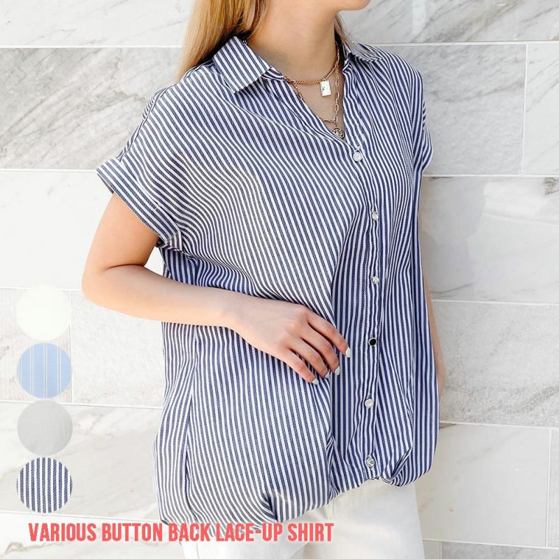 シャツ トップス バックレース 多種 ボタン 春 夏 2321112