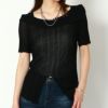 アシンメトリーなデコルテラインがお洒落なニットが登場★透かし編みでエアリーな印象に♪すっきりとしたシルエットで華奢見えを演出し気になる二の腕もカバー◎裾のスリットが表情豊かにしてくれるので、これ1枚でシンプルなスタイルもサマになる、優秀トップスです☆