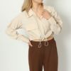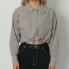 いつものスタイルに羽織るだけでサマになる今季トレンドのシアーシャツが登場★ほどよい光沢感のあるキレイめなシアー素材で適度な肌見せを演出♪裾はドローストリング仕様でお好みの絞り具合でフォルム調節可能◎短丈シルエットなので、ハイウエストのボトムスやワンピースに取り入れるとスタイルアップが叶います☆