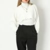 コンパクトシルエットのリブニットはオフィスにもぴったりなキレイめの装いに。