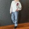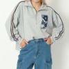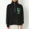 袖のライン使いがスポーティな雰囲気のハーフジップトップスが登場★ラフな着こなしを叶えるビッグなシルエットでトレンドコーデが完成♪フロントには大きな刺繍ロゴでアクセントをプラス◎1枚ではもちろん、インナーにロンTなどを合わせてシーズン長く着回せます☆