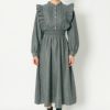 レトロな雰囲気漂うシーズンライクな素材のフリルワンピース。
