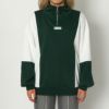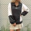 配色切替がスポーティなデザインのハーフジップスウェットが登場★胸元のさりげないロゴがスタイリングのアクセントに♪フロントのファスナーで襟を開閉すると全体の印象を変えられる◎カーゴパンツやスウェットパンツと合わせ、全体的にゆとりのあるシルエットにしたりショートパンツ+ロングブーツで脚を出すコーディネートも旬な着こなしになります☆