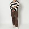 存在感のあるワイドボーダーデザインが目を惹くクロップドボーダーニットが登場★大胆な配色とコンパクトな見頃がスタイリッシュな一枚♪長めの袖丈とクロップド丈の絶妙なバランスでスタイルアップ◎ハイウエストのボトムスと相性抜群でワイドデニムやカーゴパンツと合わせたストリートスタイル、ミニ丈のボトムス+ロングブーツと合わせた韓国コーデもオススメです☆
