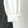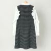 ツイードとブラウスのドッキングが可愛いワンピース。袖のフリルが女の子らしさ抜群。春先まで長く使えるアイテムです。