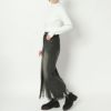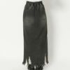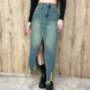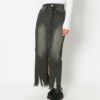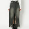 センターに大胆なスリットが入ったハイスリットデニムロングスカート。