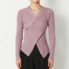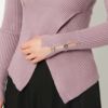 ボタンを斜めにあしらったデザイン性のあるニット。