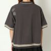 フロント刺しゅうがアイキャッチなハーフジップのポロトップス。身頃は着心地の良いスウェット素材にリブラインがスポーティーライクなアイテム!フロントの刺しゅうロゴがポイント。バックの肩部分にもさりげない刺しゅうで可愛らしさもプラス♪プリーツスカートでトレンドのスクールライクなスタイリングもオススメです。