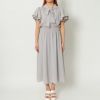 前後でデザインが異なり、こなれ感たっぷりに仕立てたボウタイデザインのワンピース。ウエストシャーリングからふんわり広がるフレアラインで緩急の効いたシルエットに◎動いたときに流れるような美しさを醸し出すダブルフリルスリーブが女心をくすぐるポイント。バックがやや開いたオープンデザインは、計算されたバランスのヘルシーな肌見せも叶う一枚です♪