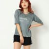 上品に輝くラメがコーディネートを華やかに見せてくれるトレンドの半袖シアートップス。フロントにはロゴをプリントし、カジュアルにも着て頂けるデザインに◎ベーシックなカラー展開なので幅広いコーデに馴染みやすい♪