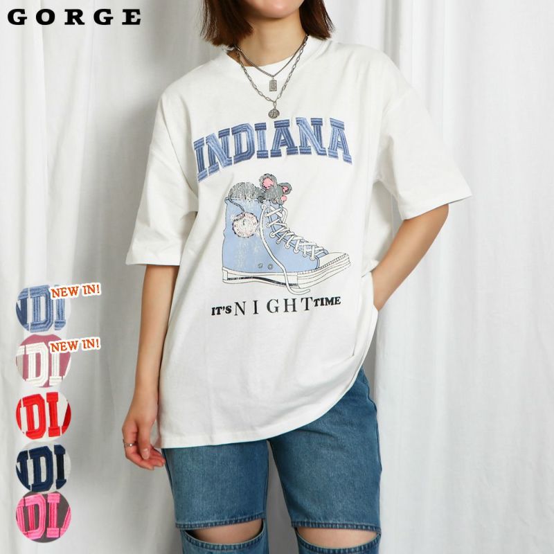 スニーカーグラフィックがアメカジムードを漂わせるTシャツ。目を引くビックロゴは、総刺繍で高見え間違いなし☆パキッとしたカラーは、コーデにスパイスをプラスしてくれます♪インもアウトスタイルも両方楽しめる一枚◎