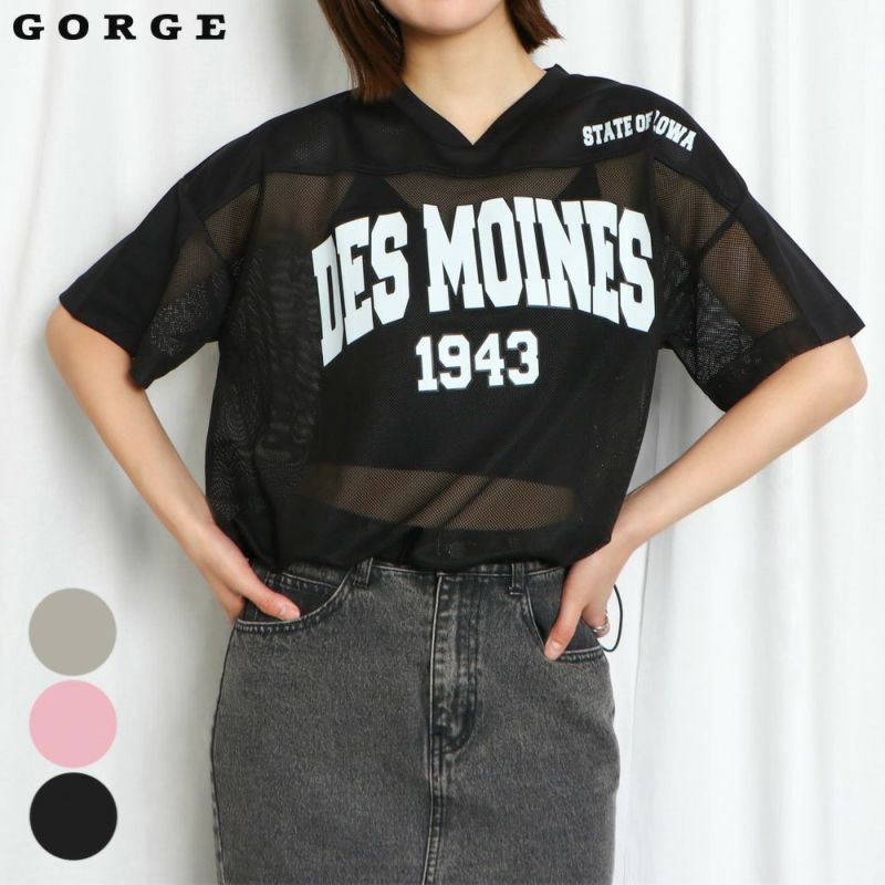 トップス カットソー 春 夏 メッシュ ロゴ ドロスト プチプラ 韓国ファッション 2420378