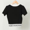 艶感のあるラメ入りニットトップスで、いつもの着こなしをアップデート。トレンドのコンパクトなシルエットで旬顔に☆ウエストにジャガードされたロゴがポイントになり、コーデを引き立てます◎