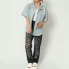 バックのロゴデザインが目を惹くビッグシルエットのオーバーシャツ。人気のビッグシルエットに、バックには蛍光ロゴデザインをのせて目を惹くアイテムに仕上げました。着心地のよい素材に、無地とストライプなど人気の柄にあわせやすいカラ―展開が魅力的な一枚。ボタンを開けてさっと羽織れば旬なこなれスタイリングが決まります。