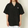 《ハート×発泡ロゴ》レディース 開襟シャツ ストリート映え 春夏秋