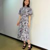 ボタニカルなフラワー柄が大人フェミニンで女性らしいディティールのワンピース。大振りのフレアスリーブが二の腕をカバーしフロントのビジューライクなボタンが華やぎをプラス♪ウエストにはシャーリングゴムを使用しウエストの細さを際立てるデザインに◎羽織りや小物に辛めのものをセレクトするとバランスが取れてオススメ。