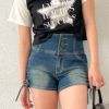ボトムス ショートパンツ 春 夏 プチプラ ドロスト ハイウエスト 3つボタンデニム 韓国ファッション 2424066