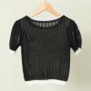 表情豊かな透かし編みでシーズンムード溢れる半袖ニットトップス。短丈にする事で目線を上に引き付ける◎太めのコード刺繍が斬新でいつものコーデを格上げ☆デニムを合わせたカジュアルライクなコーデがおすすめ。