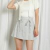 ボックスプリーツが女性らしさを上げる上品なシルエットのミニスカート。ループに付けた細めのリボンがさり気なく上品なアクセントをオン♪中はパンツになっているので、安心して着用出来るのも嬉しい◎サラッとしたサマーツイードで、快適な着心地。