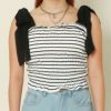 トップス ブラトップ 春 夏 リボン ボーダー プチプラ 韓国ファッション 2427717