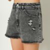ラフなダメージ加工とカットオフ裾で、こなれ感たっぷりに仕上げたショートパンツ。