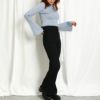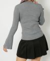 トップス ニット 秋 冬 リブ フレアスリーブ ラメ 美シルエット 韓国ファッション 2431082