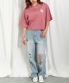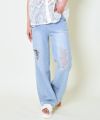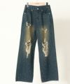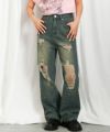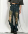 ラインストーン付きダメージデニムパンツ。ビンテージ感がありながら、キラキラと光るラインストーンが華やかな主役級アイテム。シンプルなTシャツやニットとあわせるだけで着映え間違いなし☆
