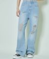 ボトムス パンツ 春 夏 秋 ラインストーン ダメージ デニム プチプラ 韓国ファッション 2432603