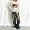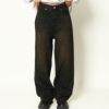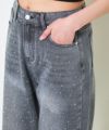 ボトムス パンツ 秋 冬 デニム ヴィンテージ オーバーダイ ラインストーン 韓国ファッション 2432605