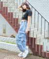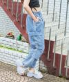《サイドライン×ルーズシルエット》レディース デニムカーゴパンツ ストリート 春夏秋冬