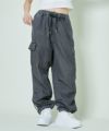 サイドラインがポイントのデニムカーゴパンツ。サイドラインとカーゴポケットのトレンドを抑えたデザインで旬顔に◎裾にはドローコードが付いているのでストレートシルエットしたり裾を縛って丸みのあるシルエットに変化を楽しめます。
