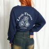 フラワーモチーフのラメ入りバックプリントが可愛らしいショート丈スウェット。裾のドローコードを絞って自分好みのシルエットがつくれる♪ショート丈&幅広シルエットで華奢見え+足長効果も。ロングスカートやハイウエストボトムスと好相性◎