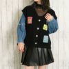 トップス カーディガン ニット 柄 秋 冬 カジュアル ワッペン 韓国ファッション 2440012