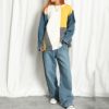 ニットとデニム生地の異素材ミックスのコンビネーションが、主役級のニットプルオーバー。配色デザインとダメージ加工で遊び心満載のアイテムです!ベーシックなボトムスにオンするだけで個性的で洒落たコーデの完成☆