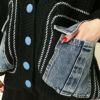 個性的なデザインが魅力のニットカーディガン。ざっくり編みニット×デニムのコンビネーションが、コーデにお洒落なアクセントを加えてくれます◎シンプルなインナーと合わせるだけで、存在感のあるスタイリングが完成♪