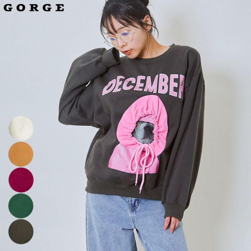 フードを被ったワンちゃんの立体的なユニークデザインが目を惹く裏起毛スウェット。ゆるっとルーズなサイジングが使いやすい◎インパクトのあるデザイントップスには、シンプルなボトムスを。あえて綺麗めボトムスやレディライクなボトムス合わせもオススメです♪合わせるボトムスを選ばず、デイリーに活躍してくれる1着。
