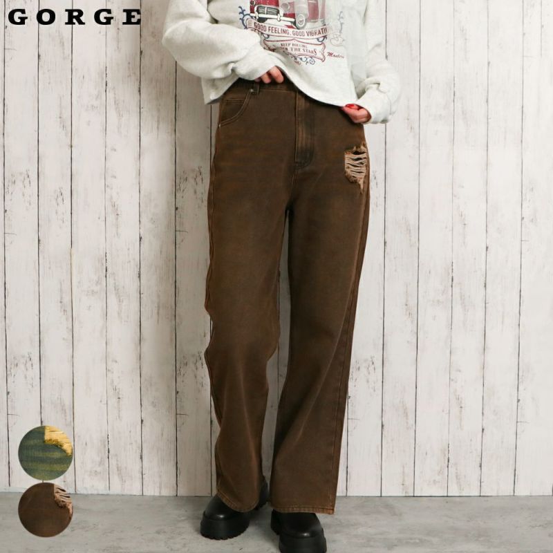 ボトムス パンツ デニム オーバーダイ 韓国ファッション ダメージ ヴィンテージ ワイド 2444081
