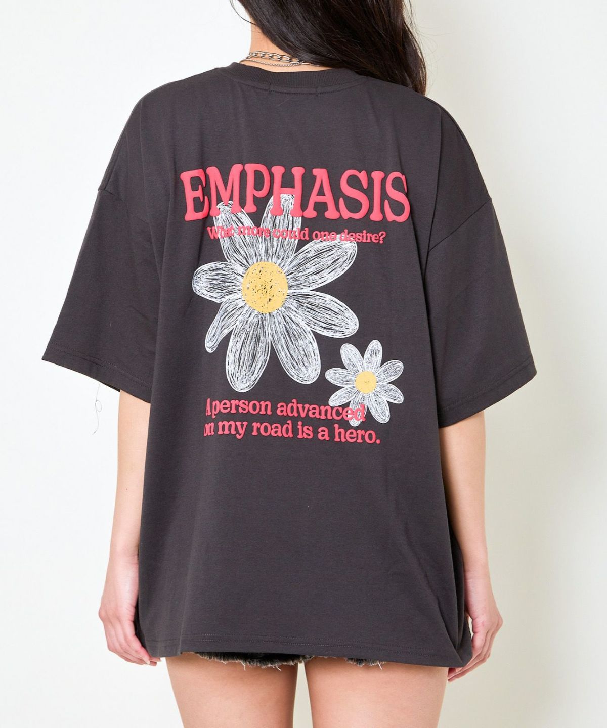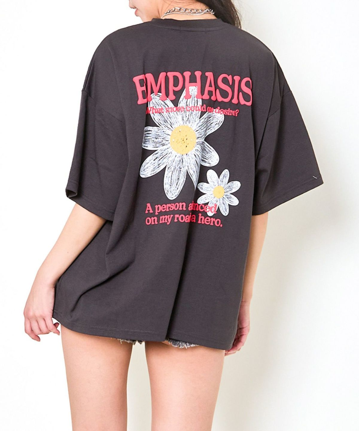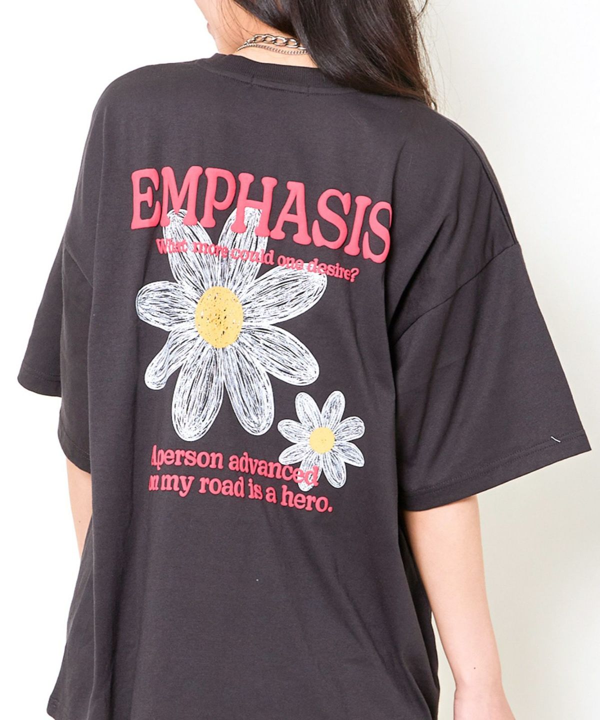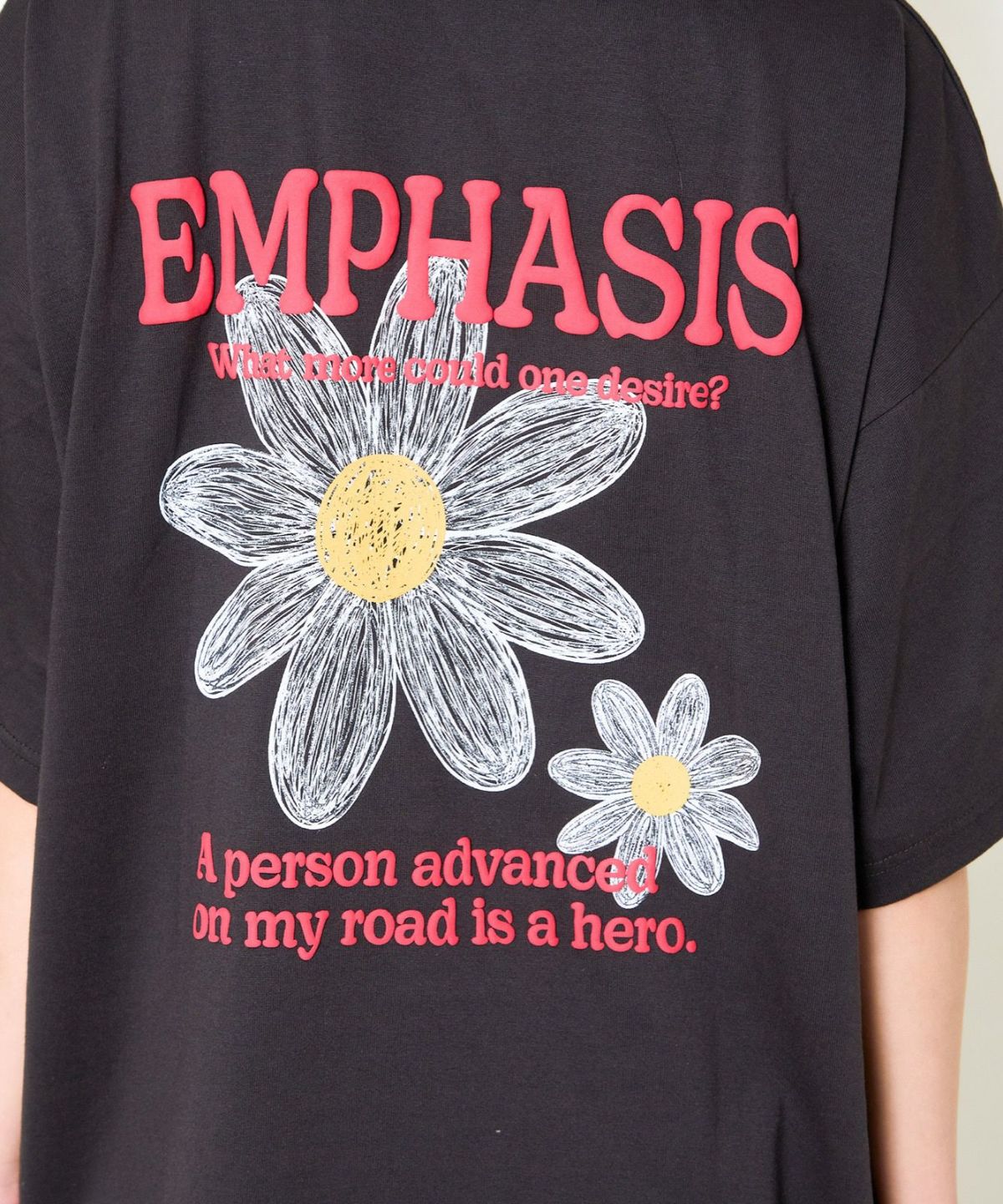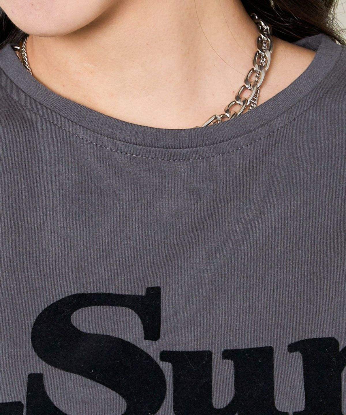 発泡プリント花ラメTシャツ
