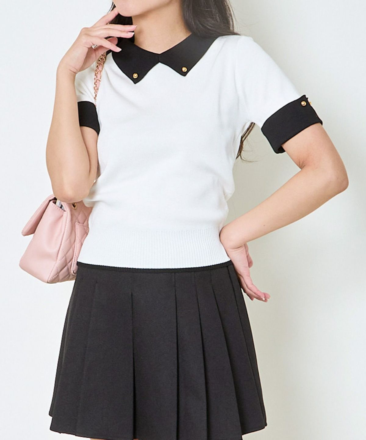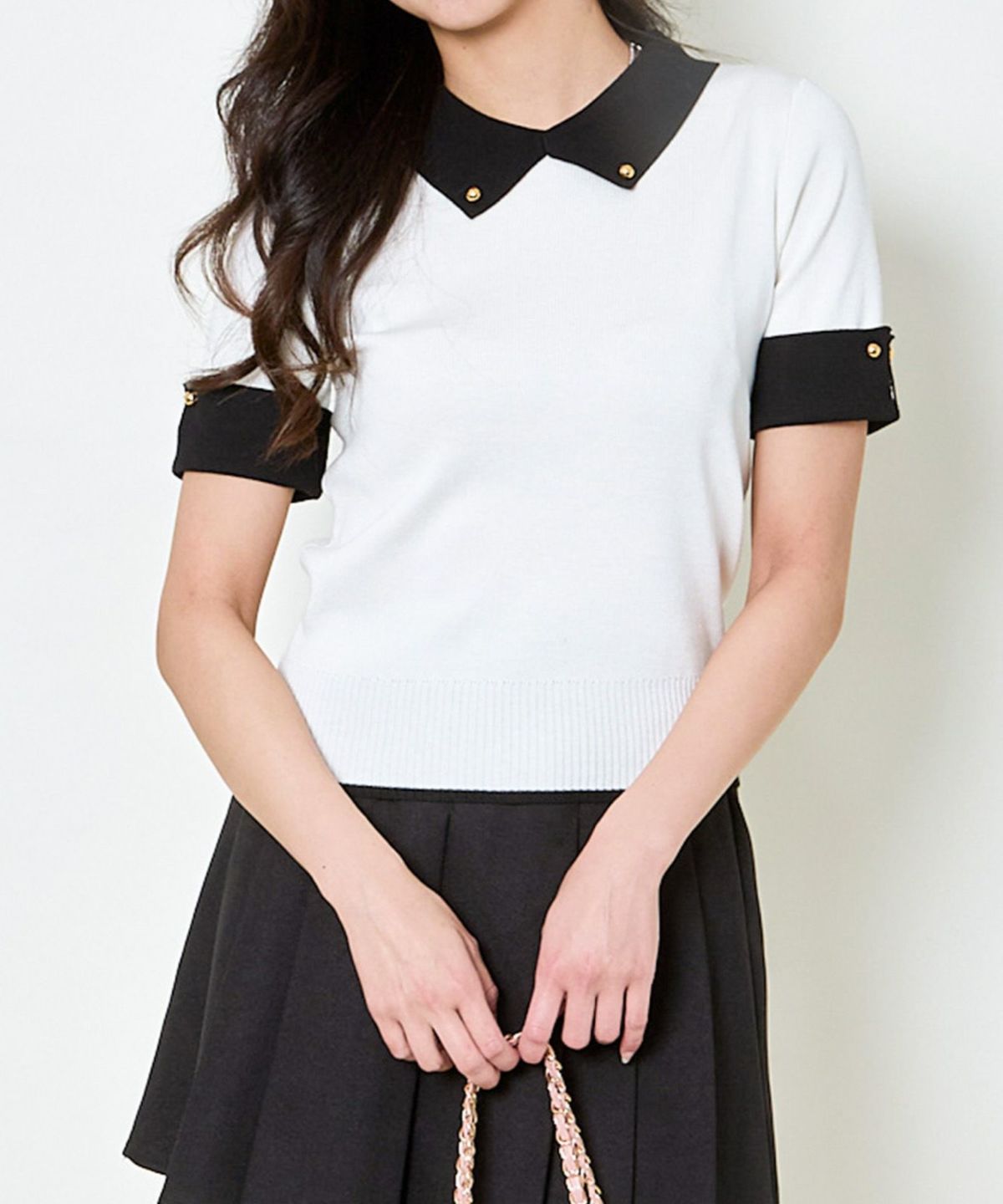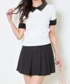 《ガーリーモードな1枚》配色デザイン半袖ニット