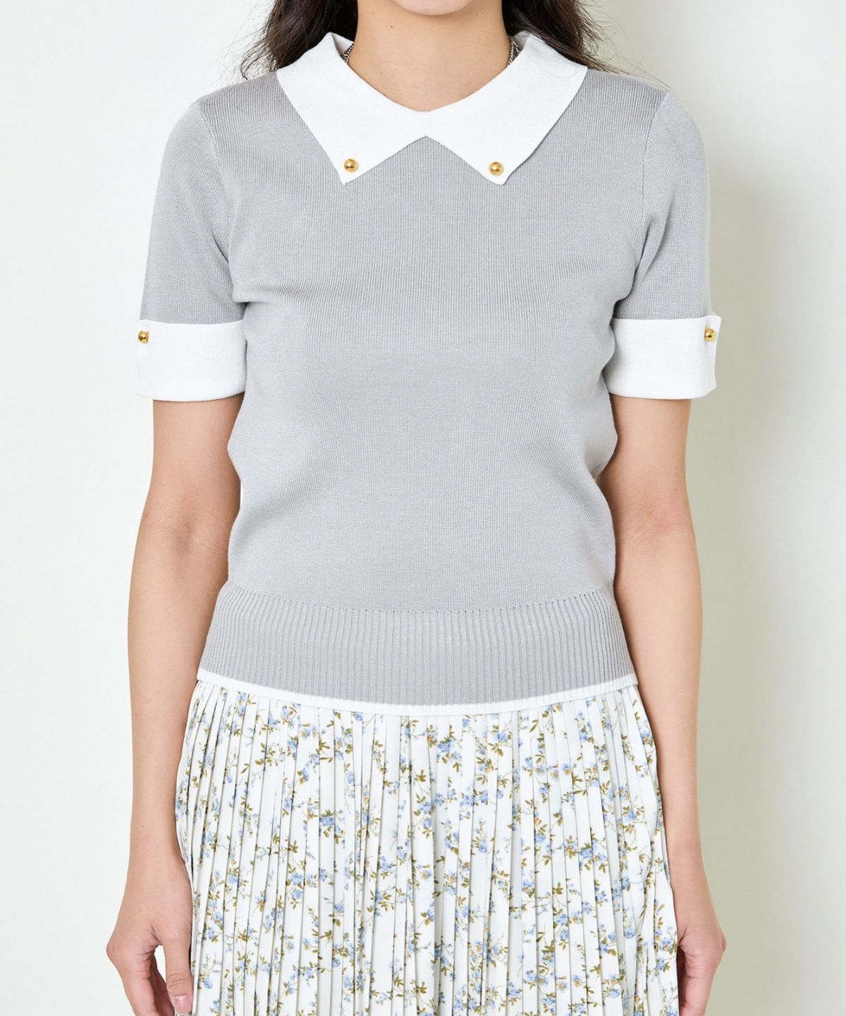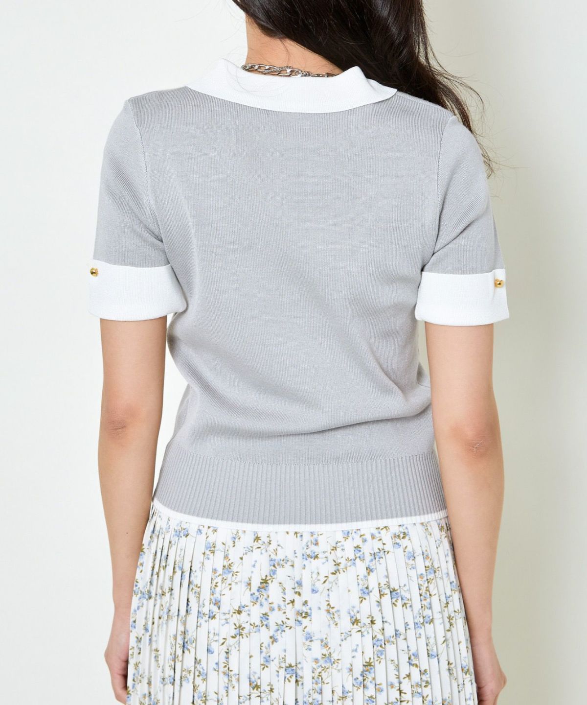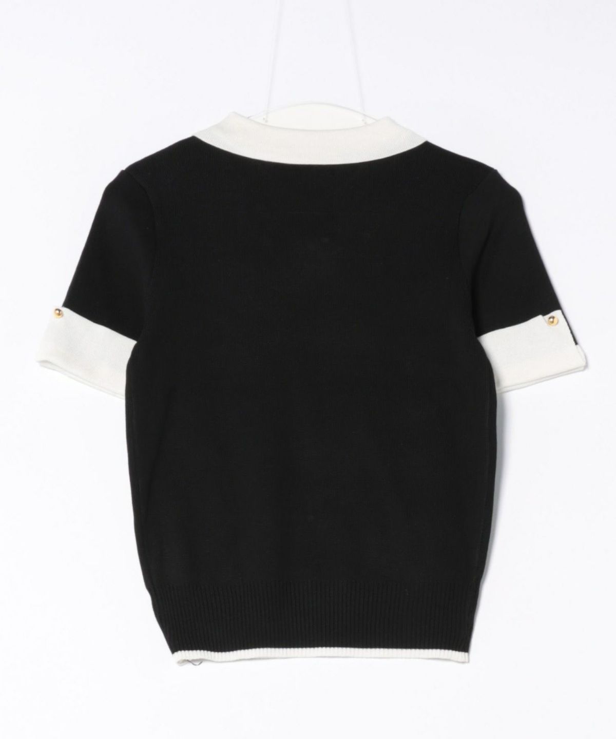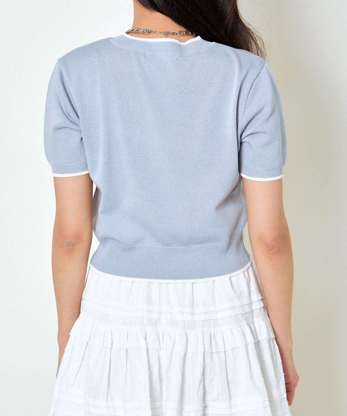 オーガンジー付き猫半袖ニットプルオーバー