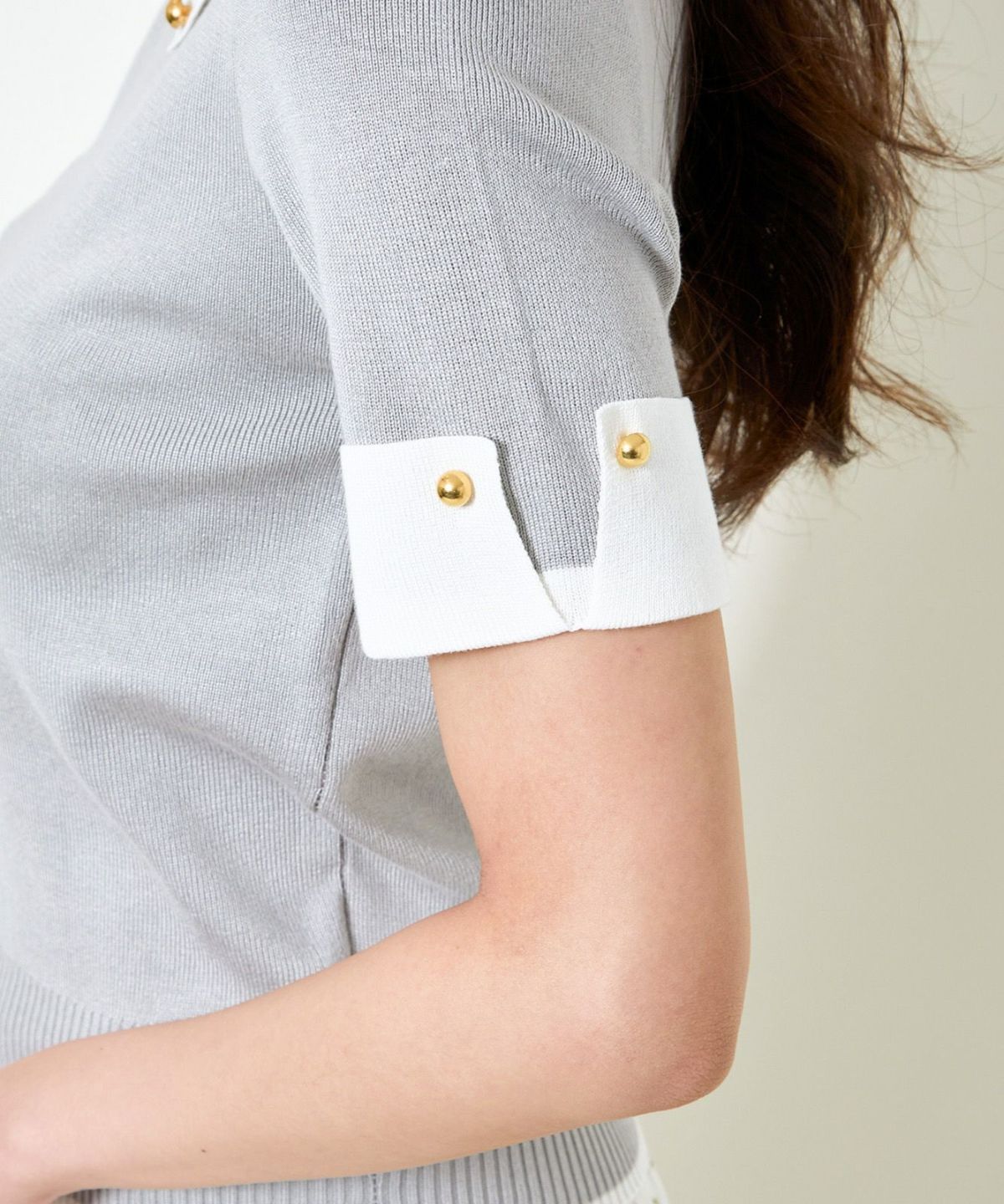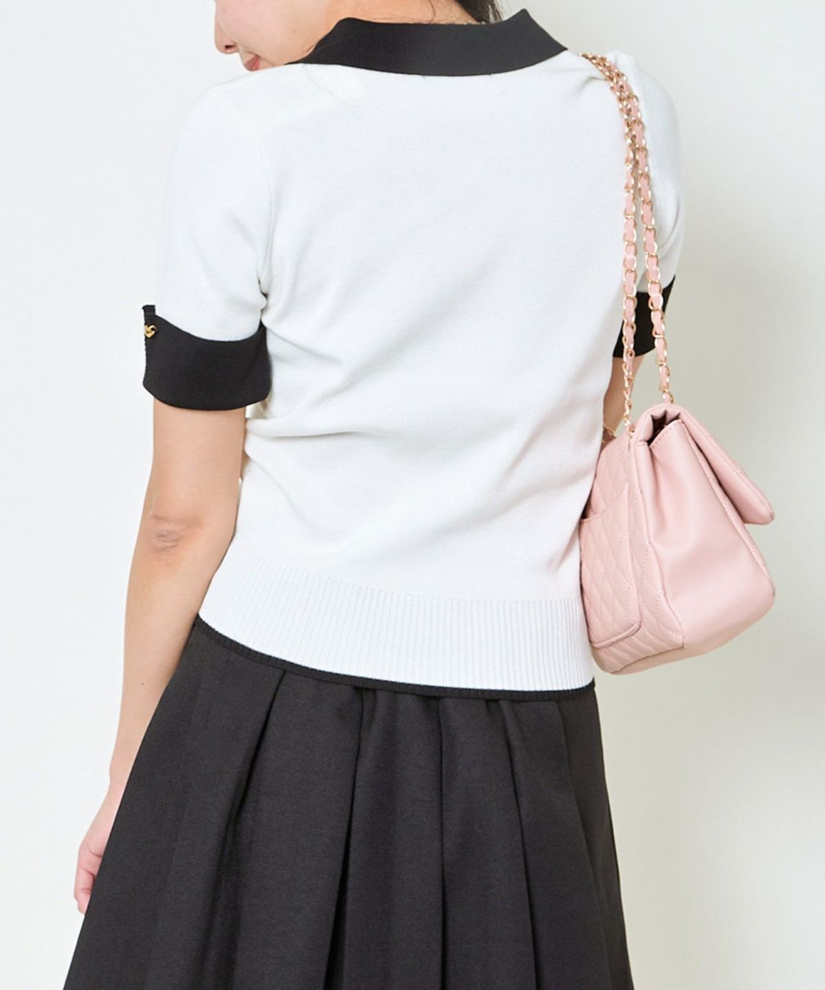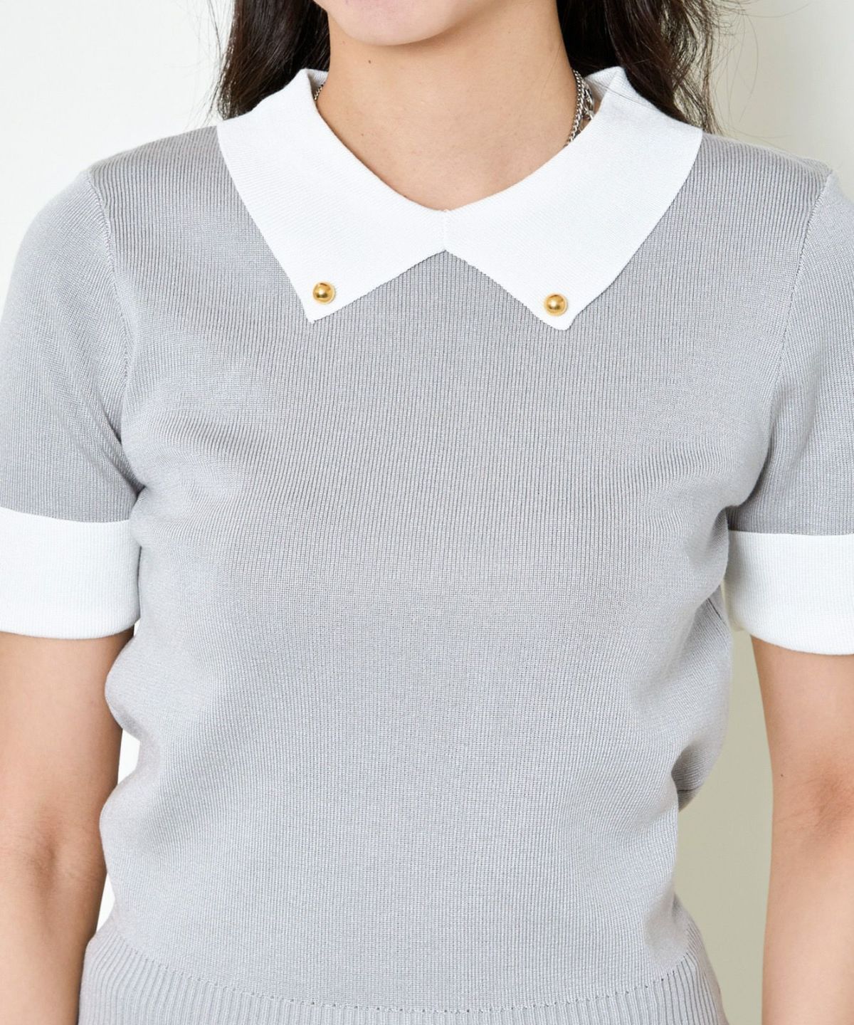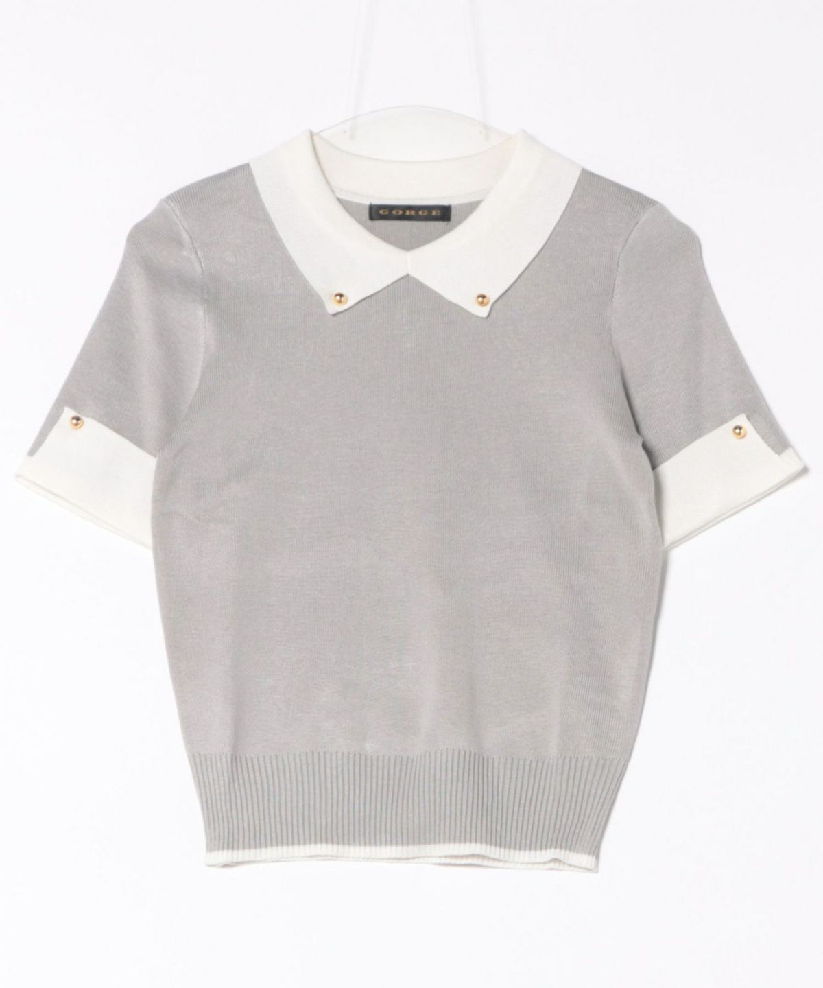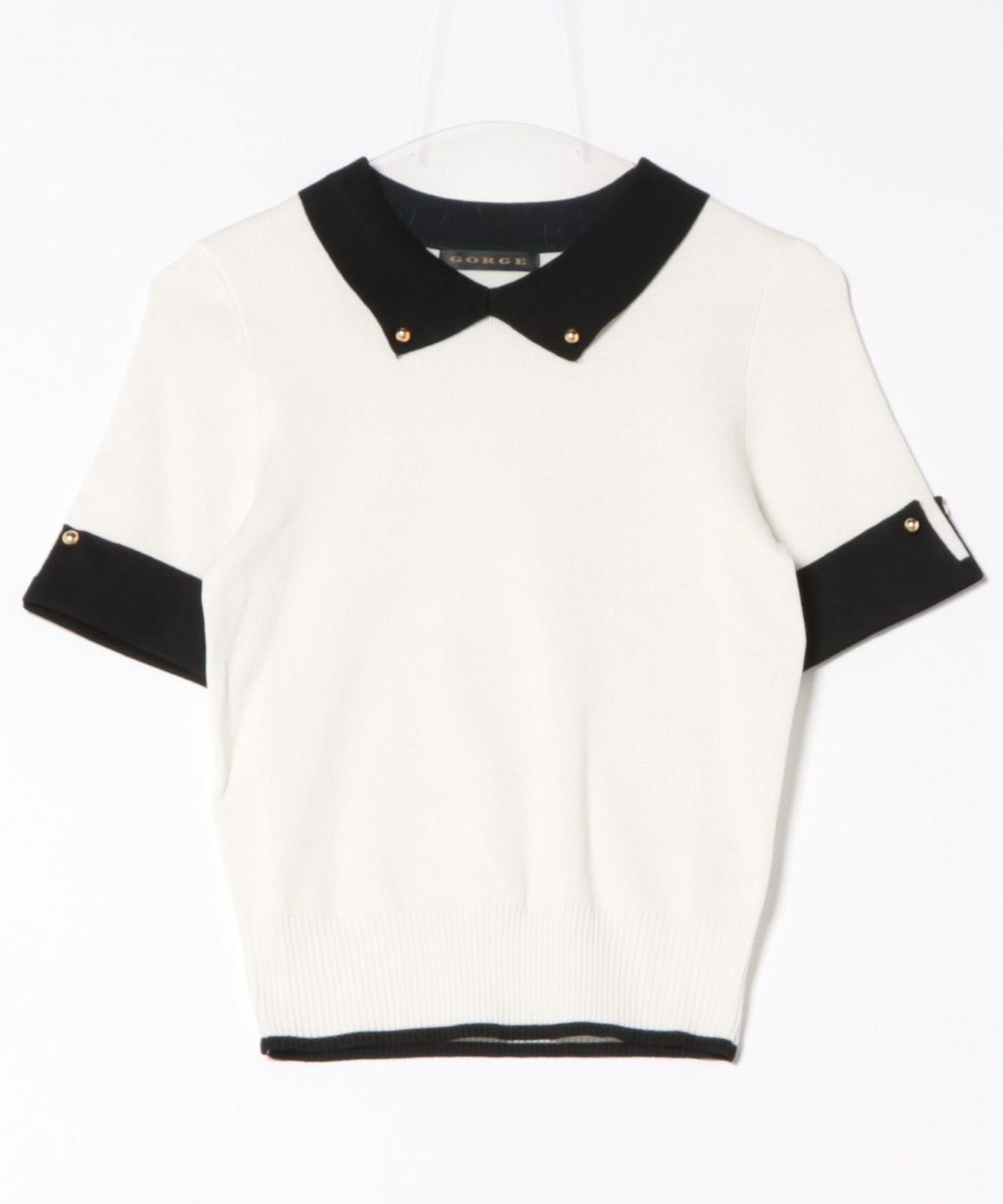 オーガンジー付き猫半袖ニットプルオーバー
