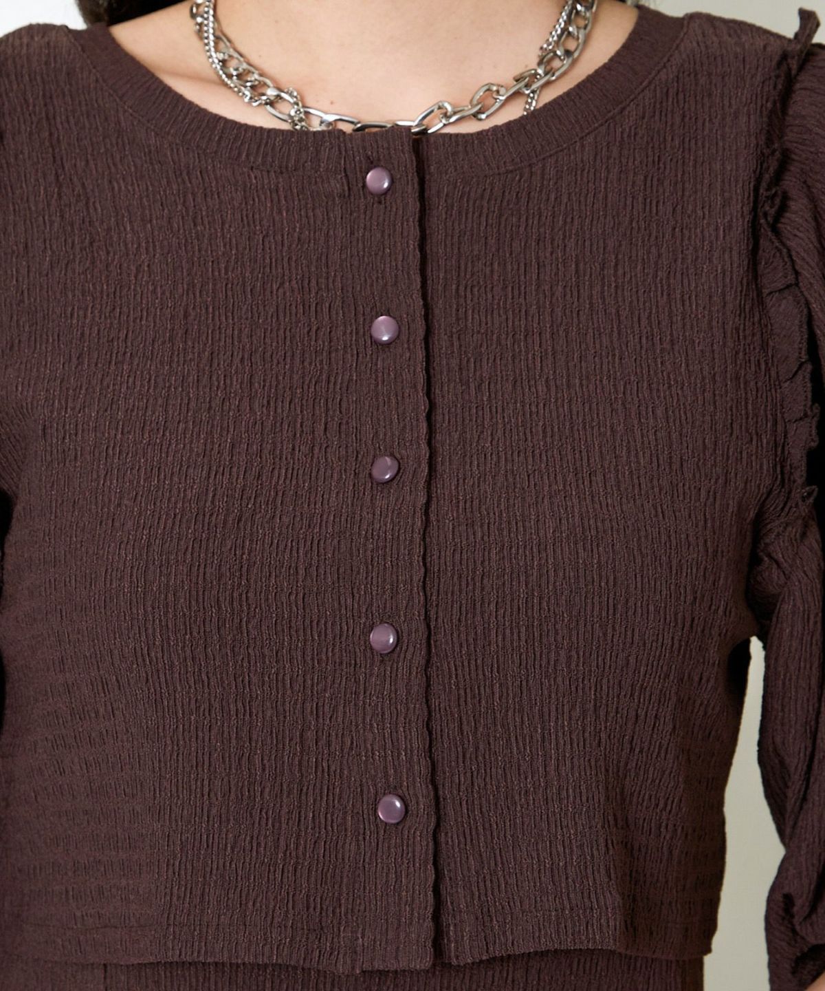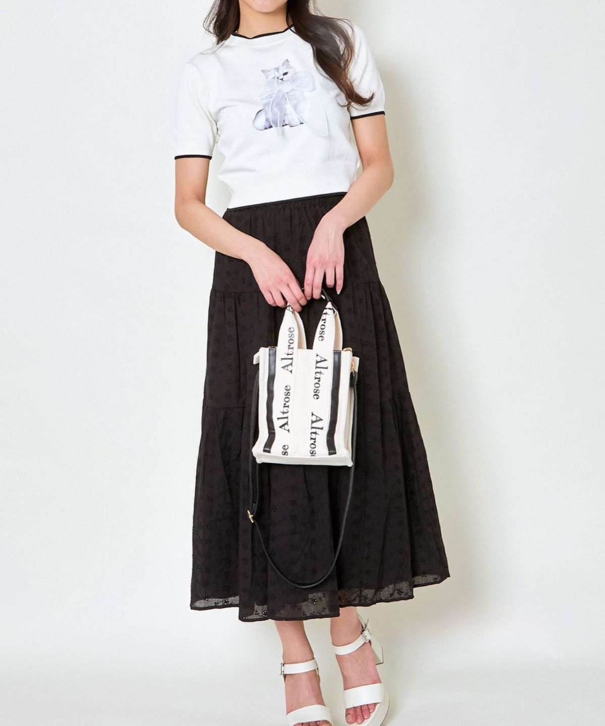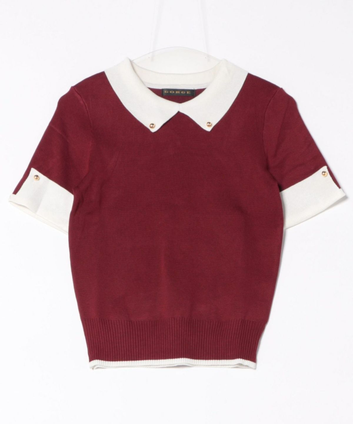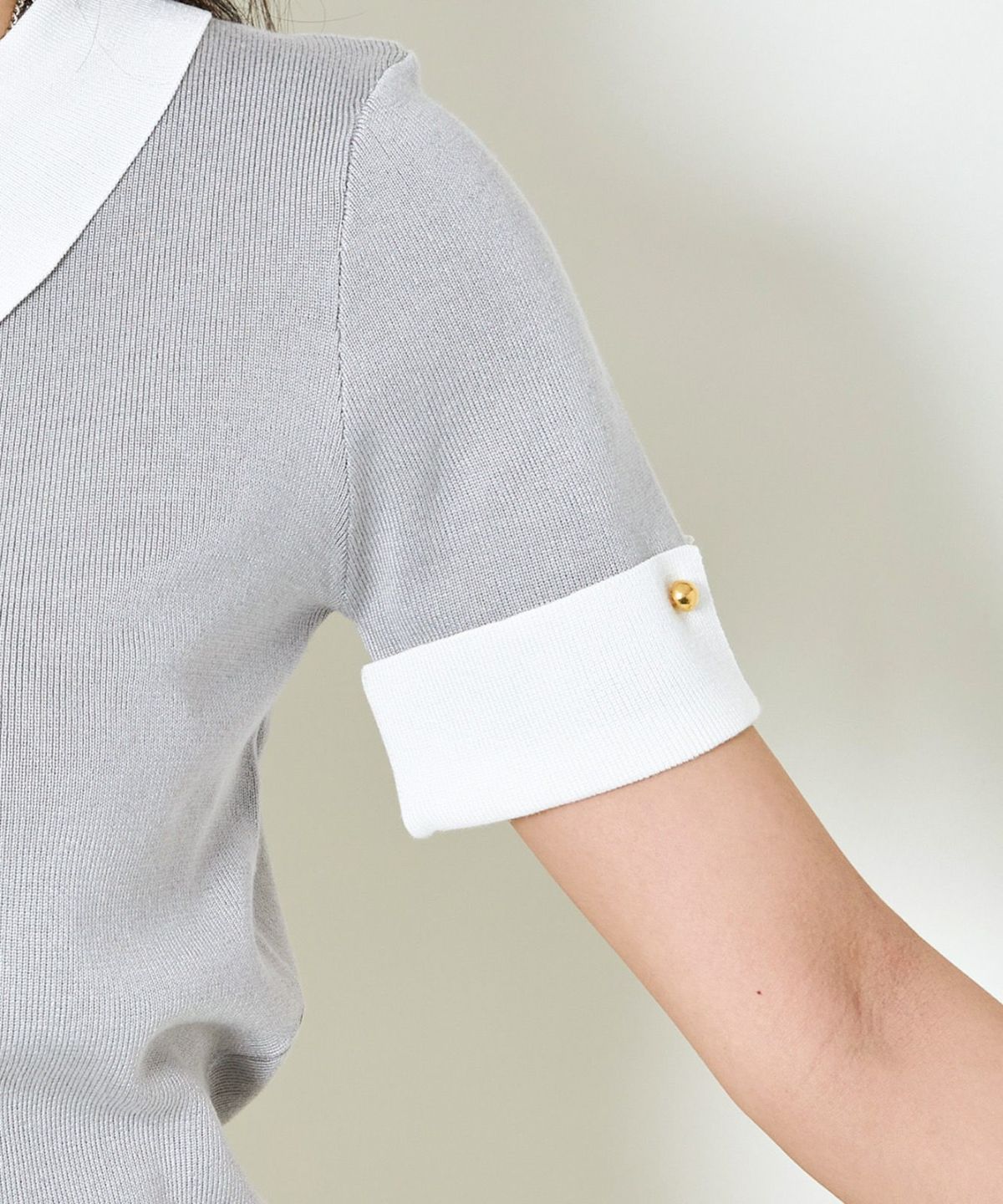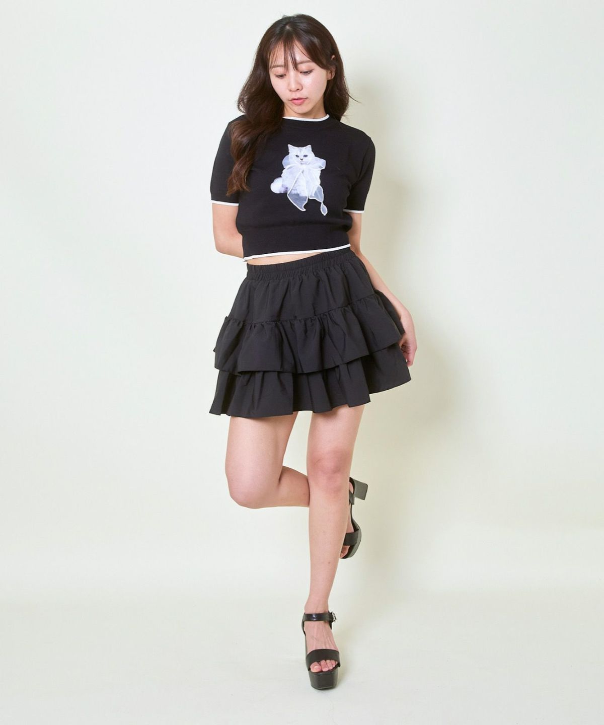 オーガンジー付き猫半袖ニットプルオーバー