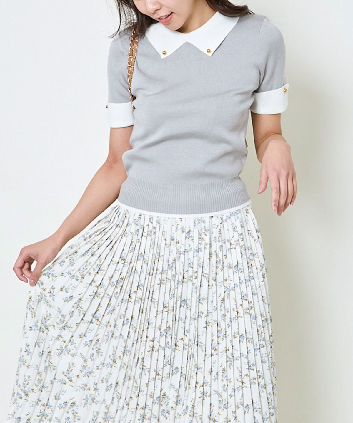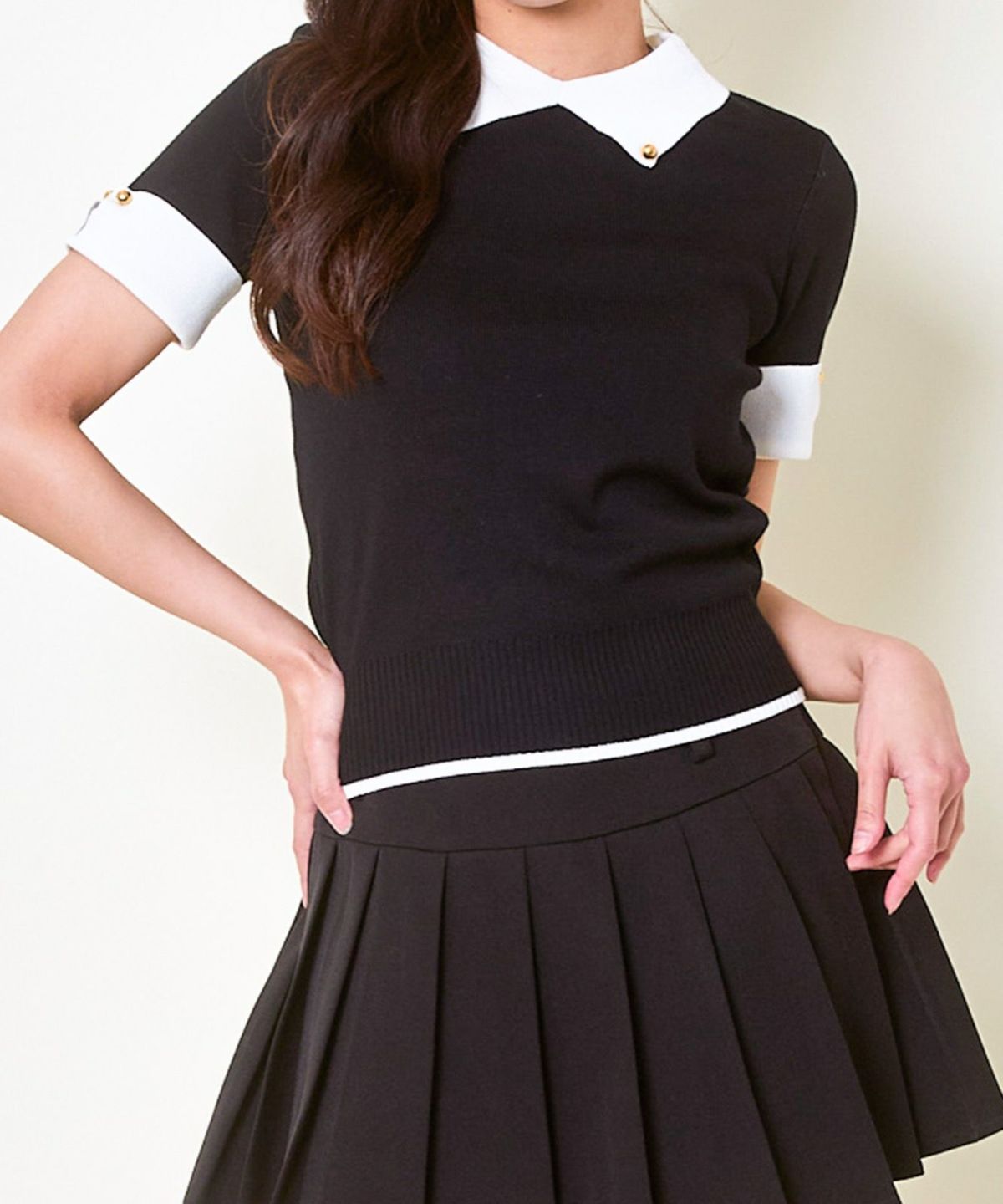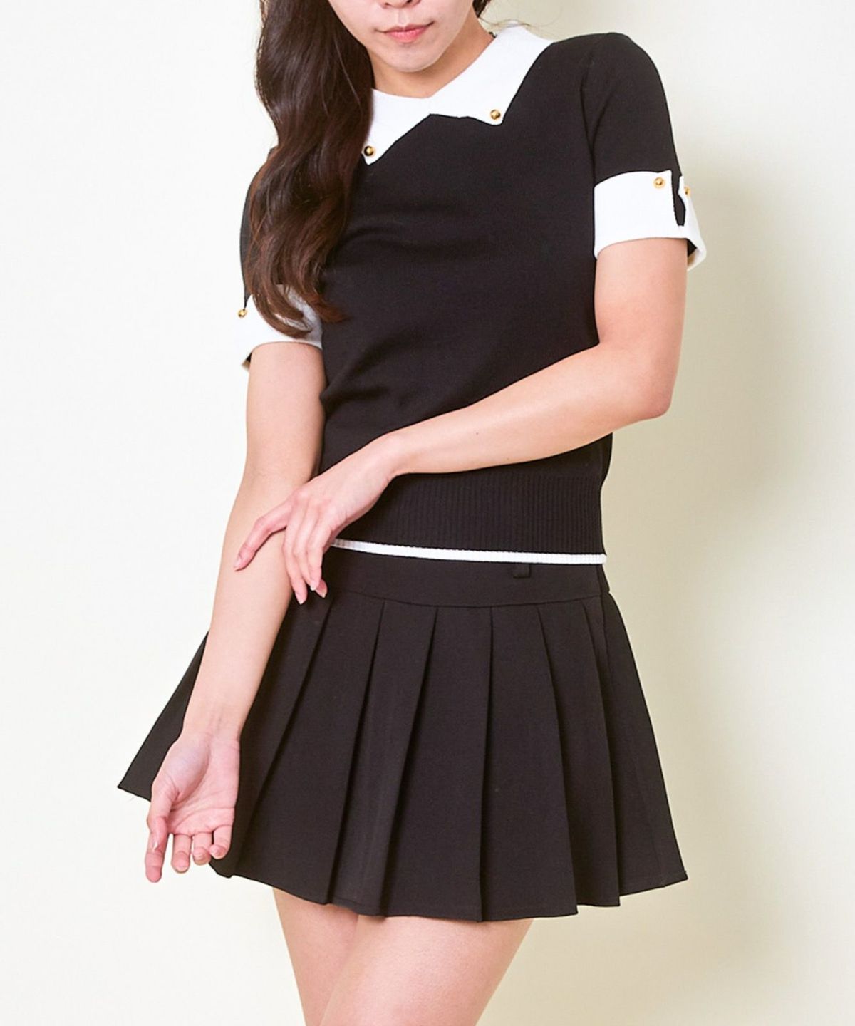 《2点セットで着映え》レディース 金ボタンニット×プリーツスカートSETUP 春夏秋