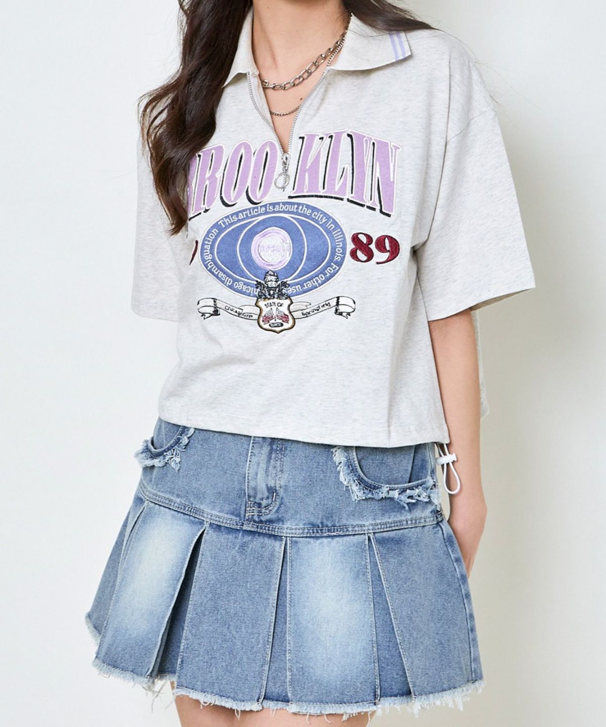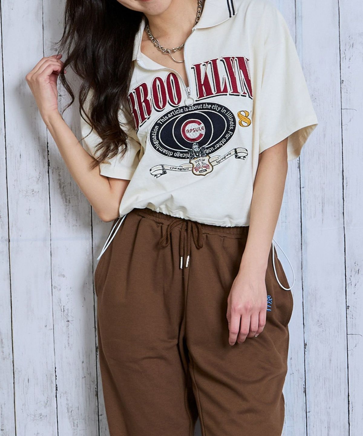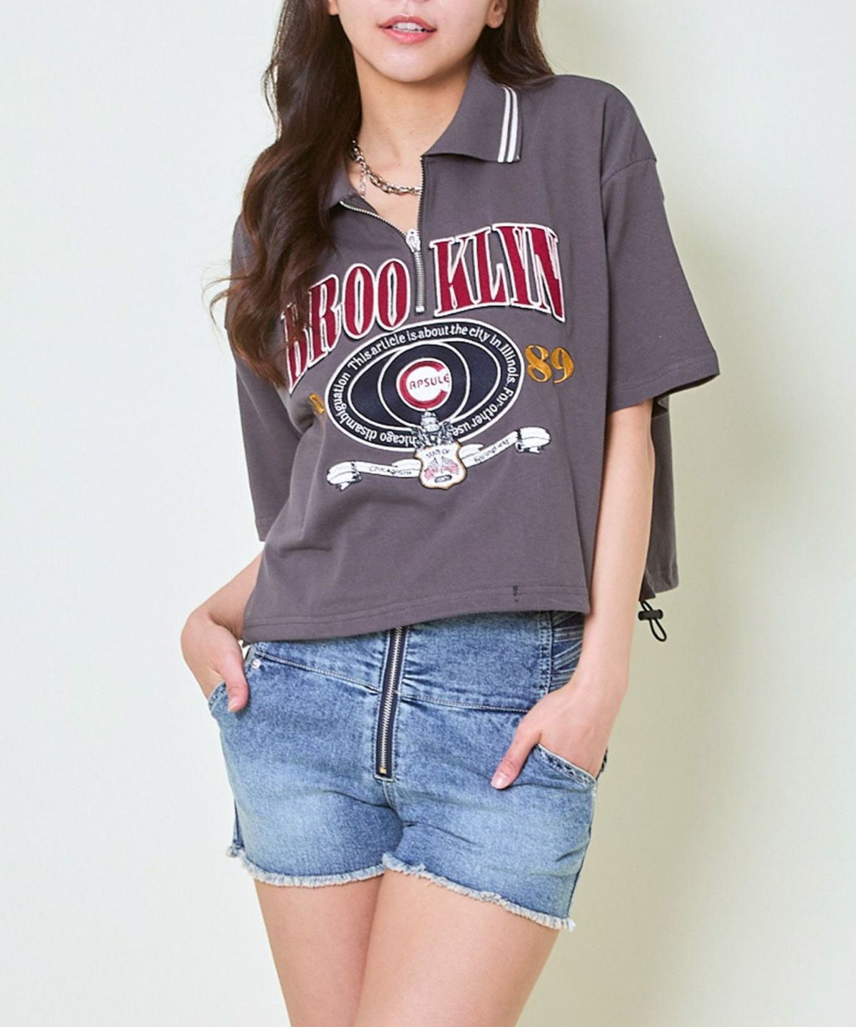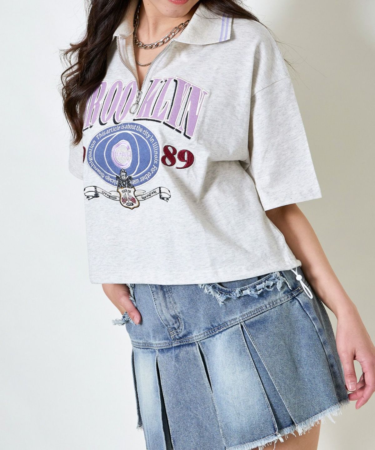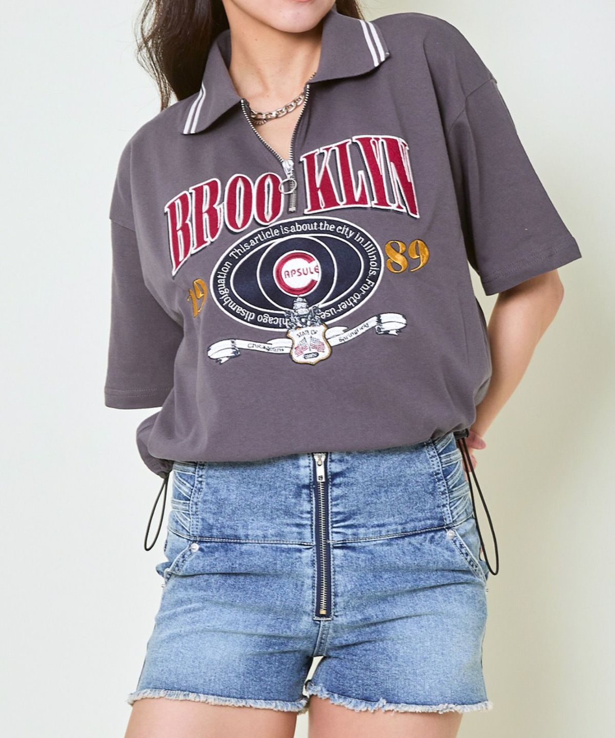 ハーフZIPブルックリン半袖トップス