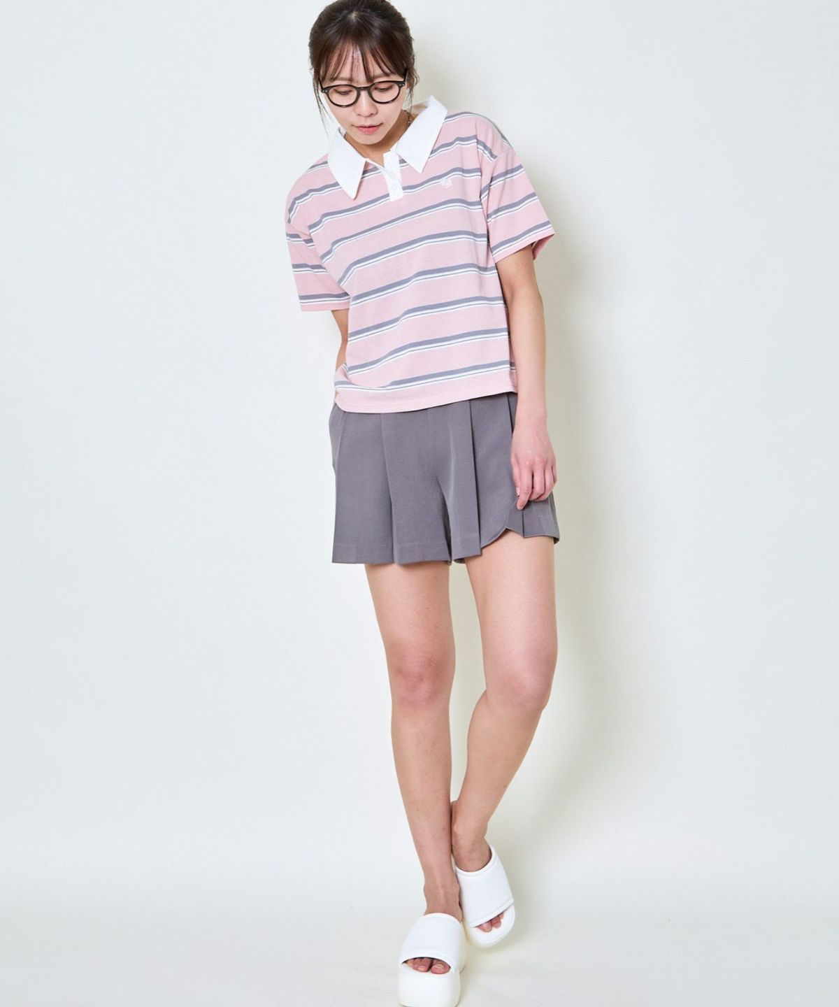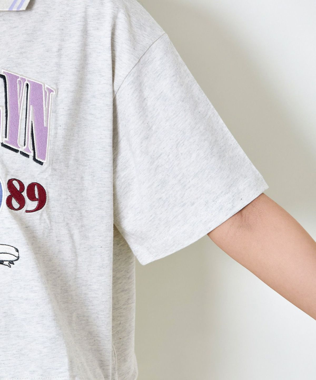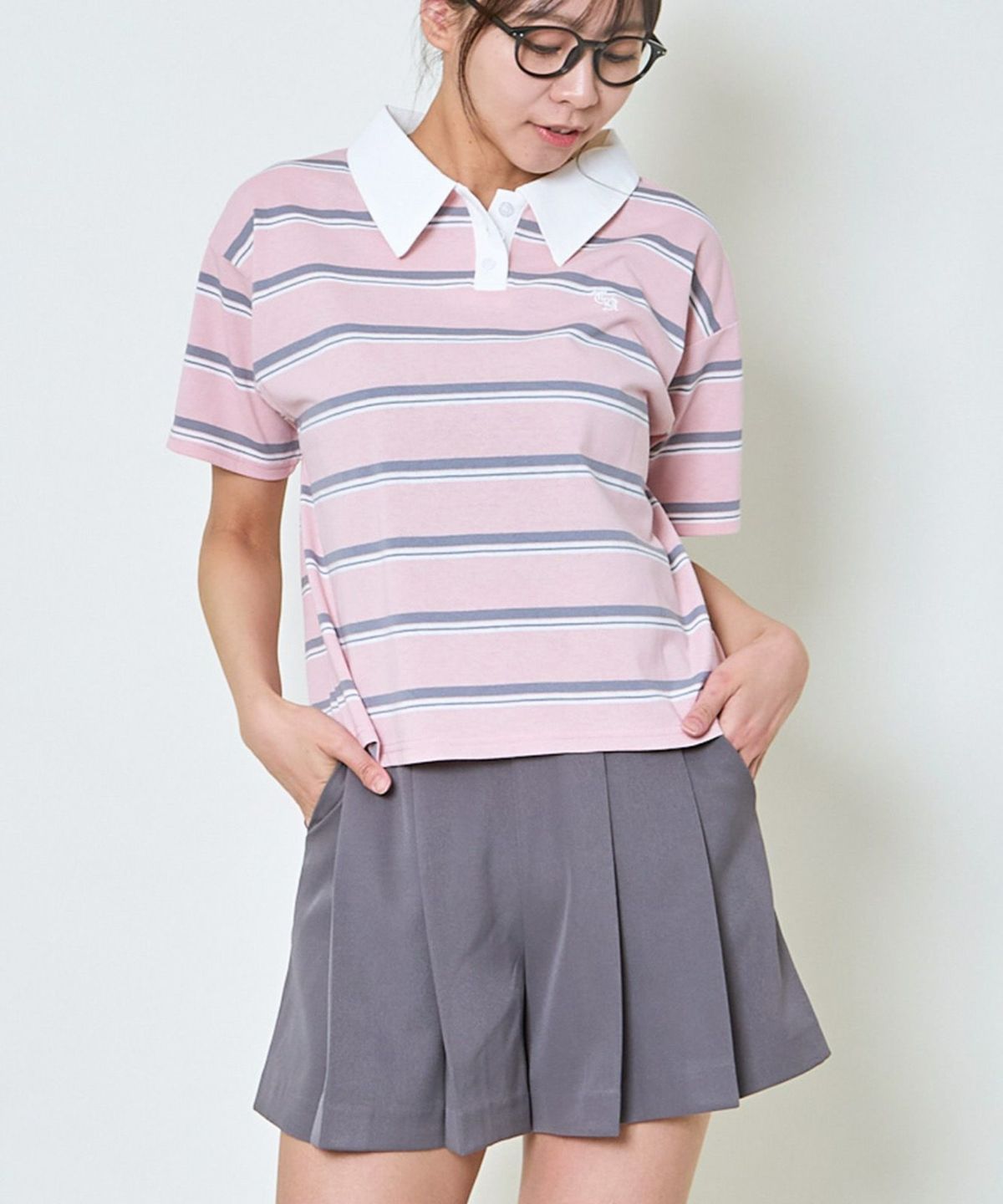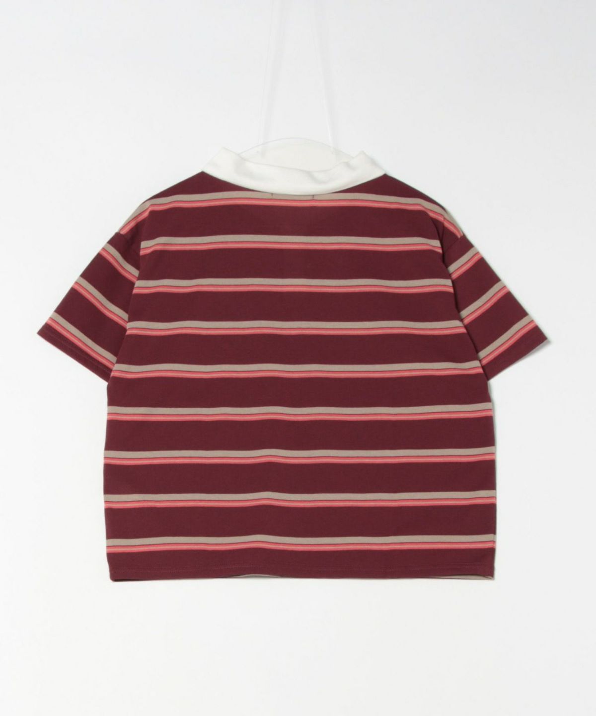 ボーダーポロ襟刺繍半袖Tシャツ
