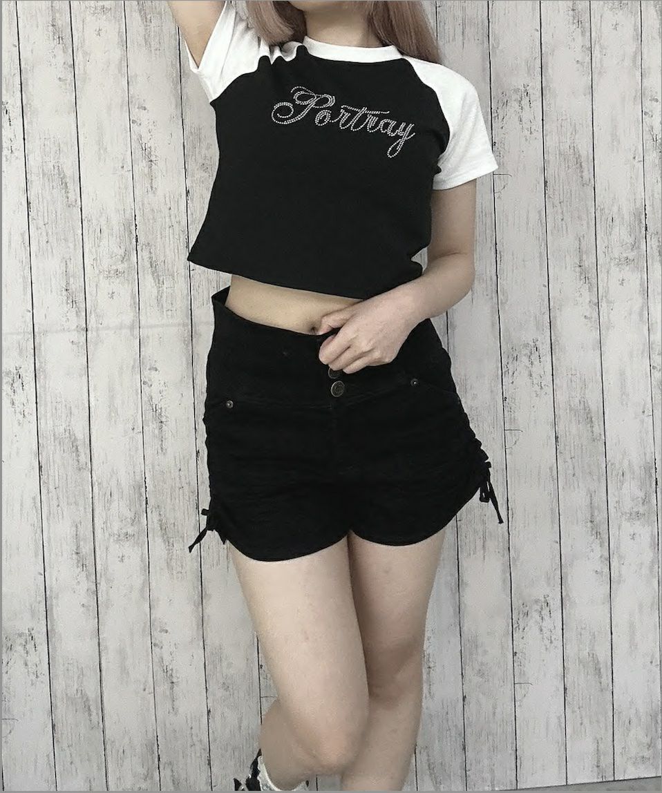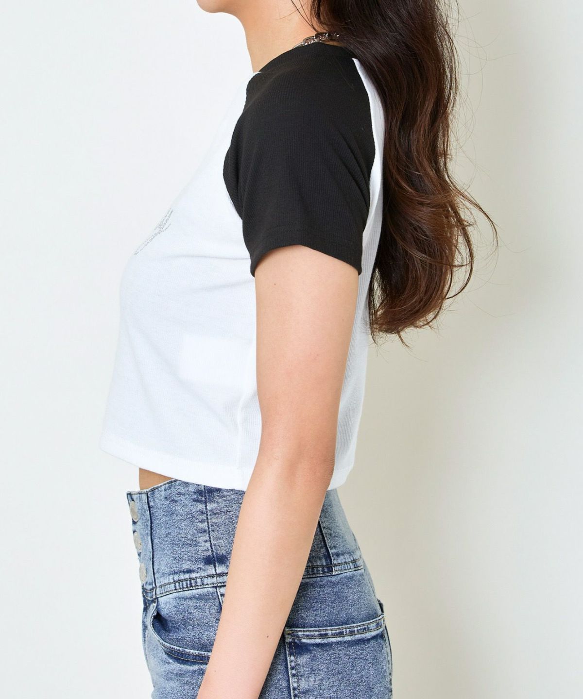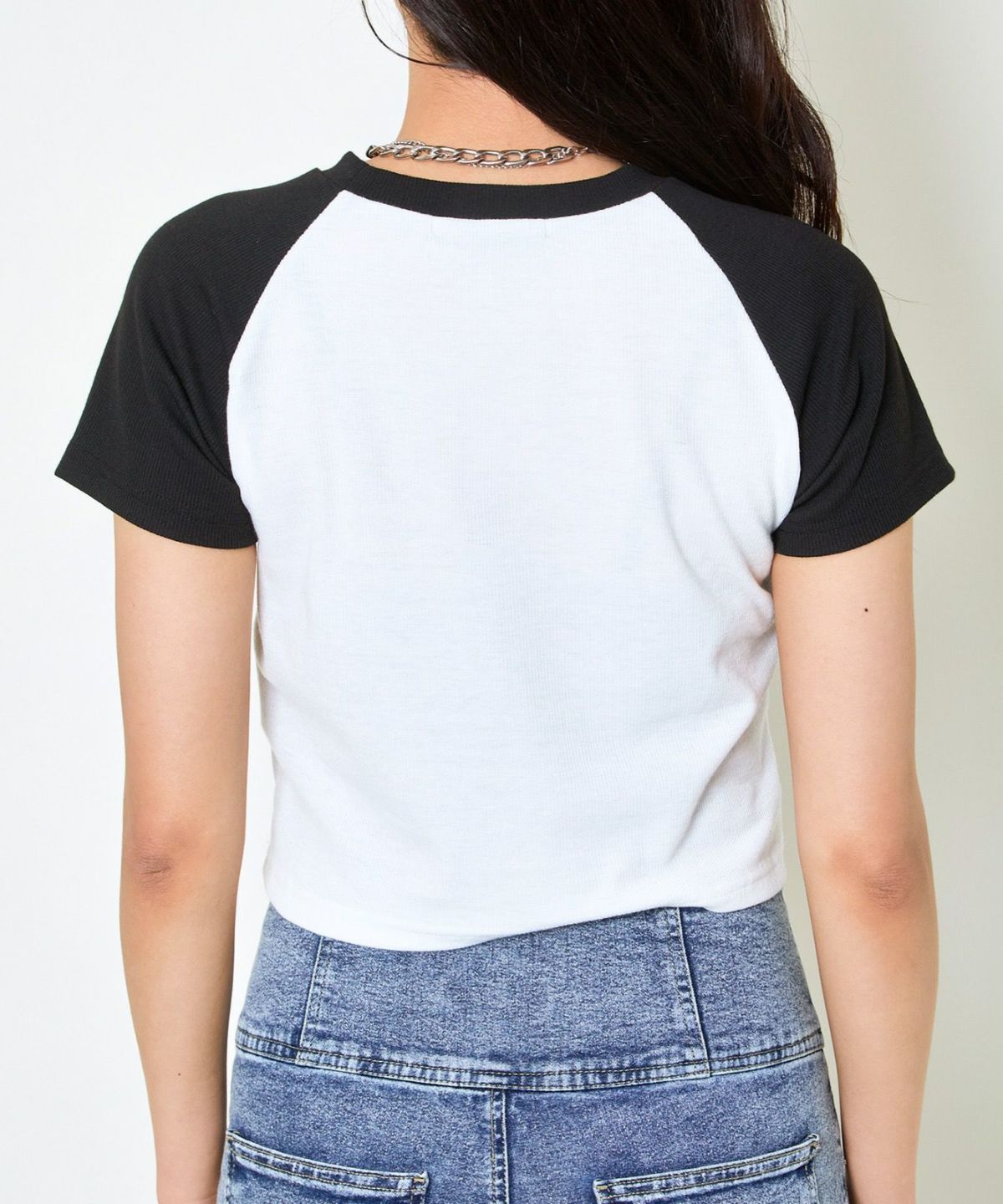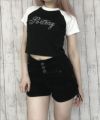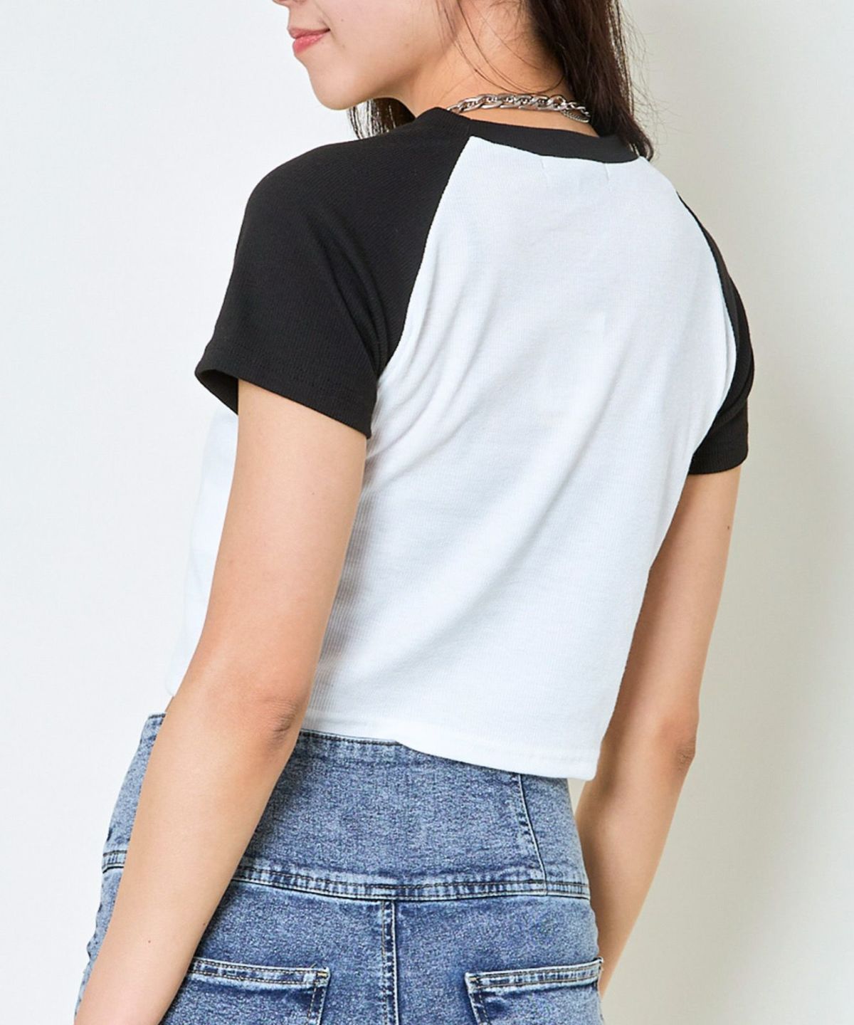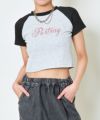 《ラインストーン×ラグラン配色》ショート丈トップス