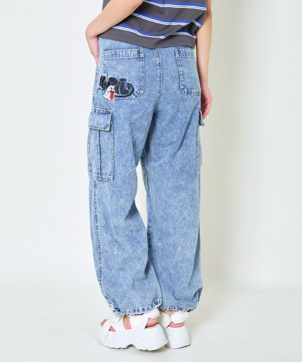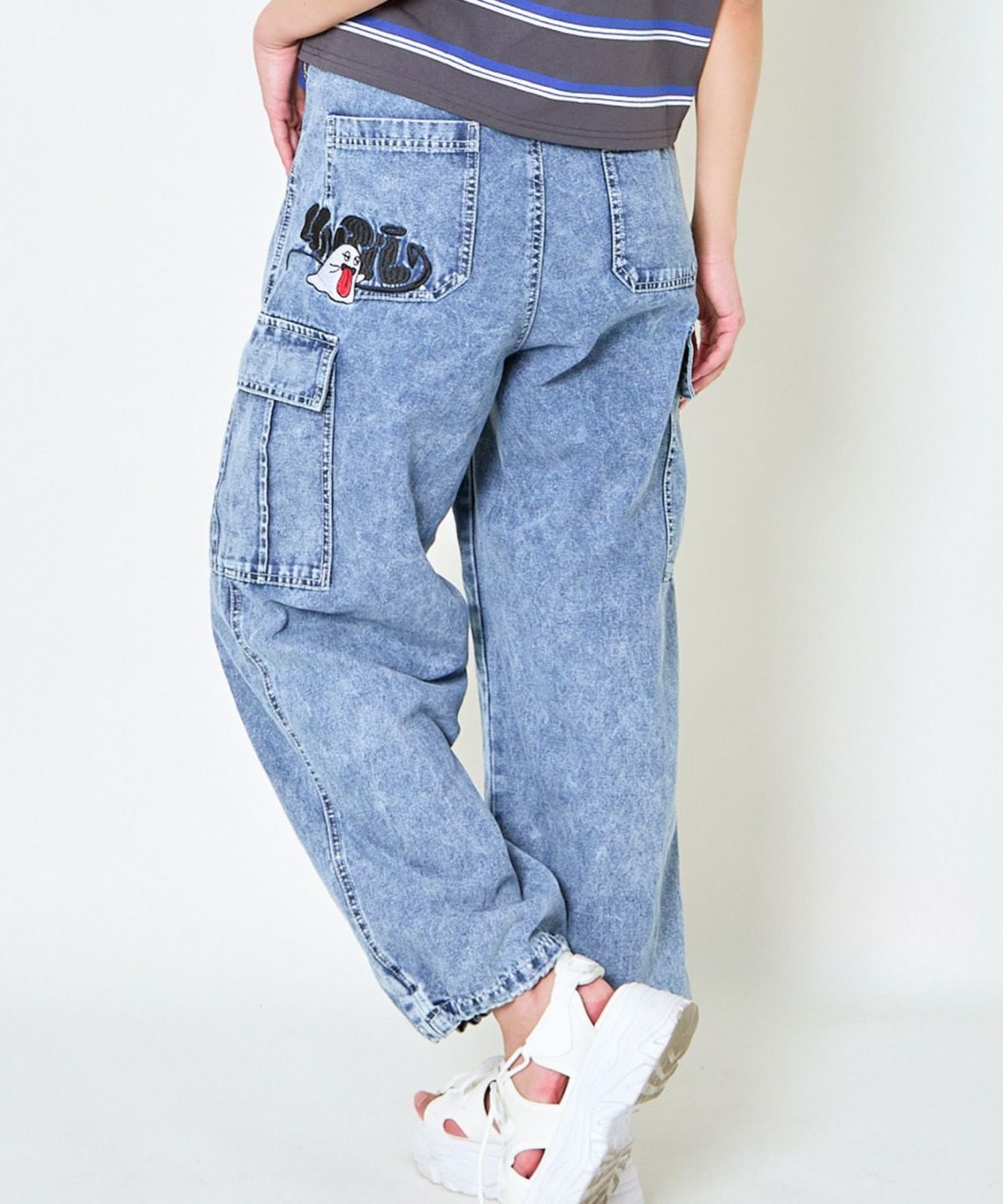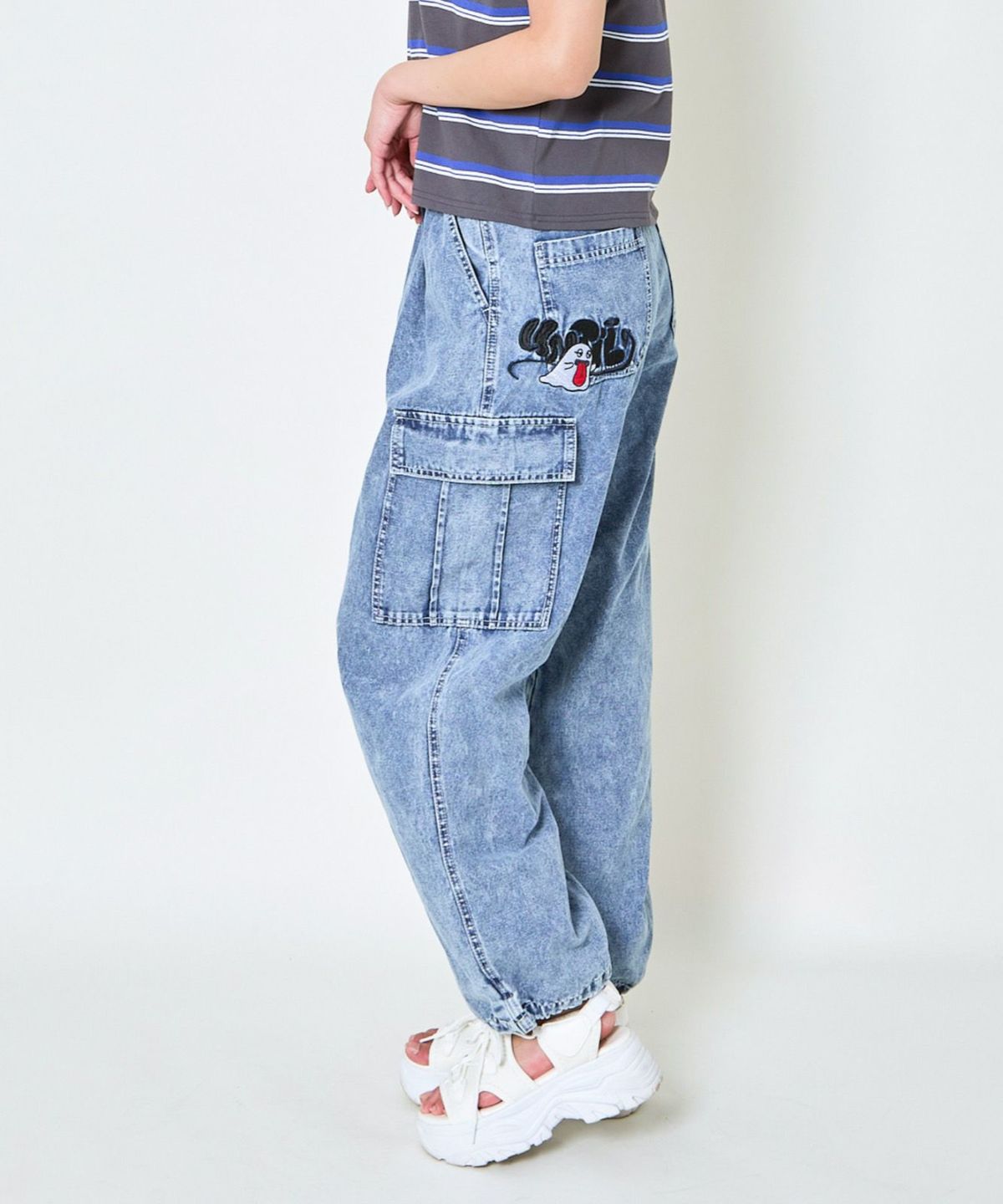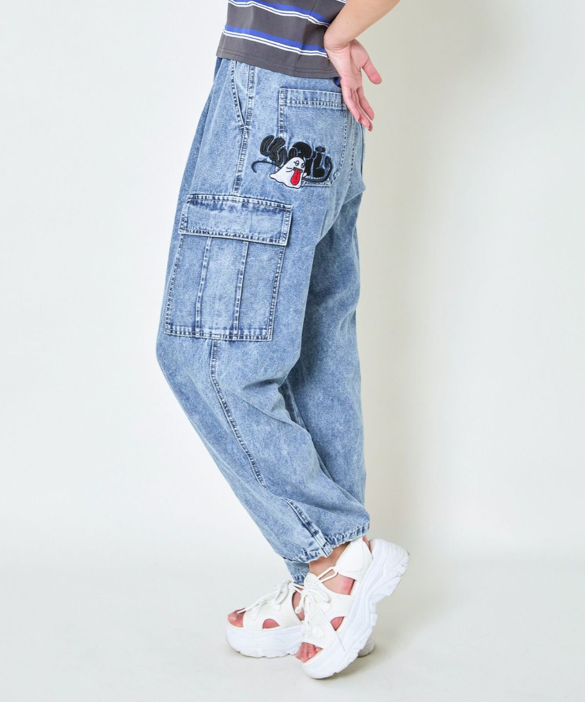 《カーゴポケット×ゆるシルエット》レディース デニムパンツ 刺繍入り ジョガー風 春夏秋冬