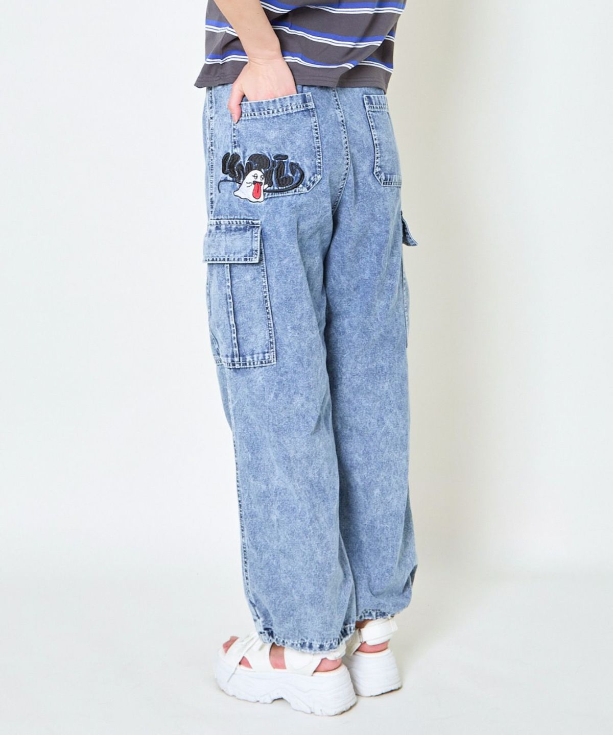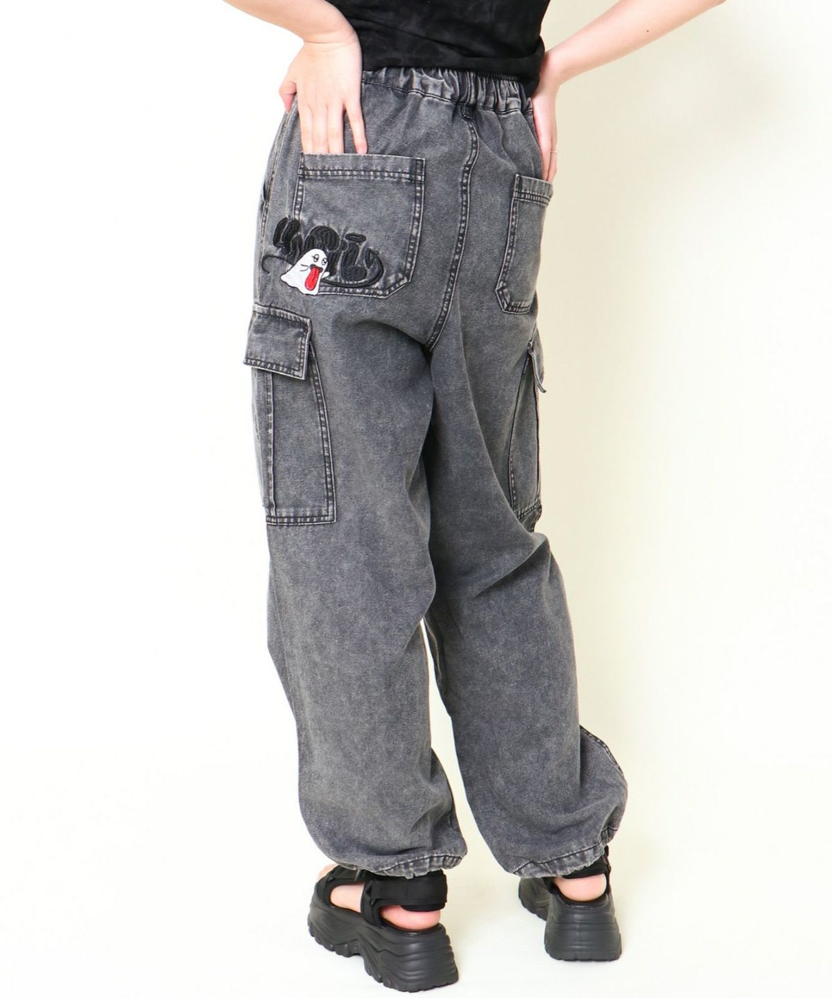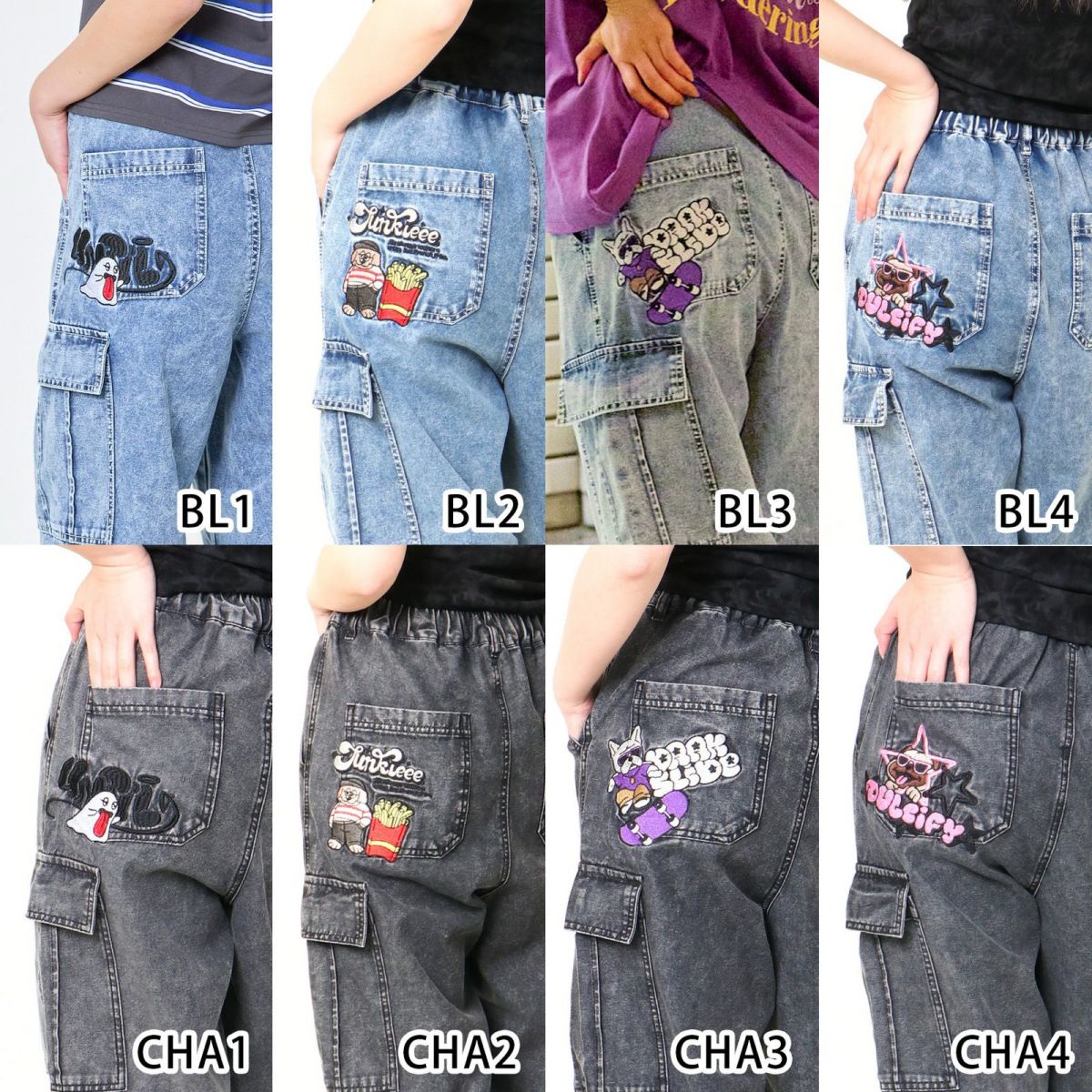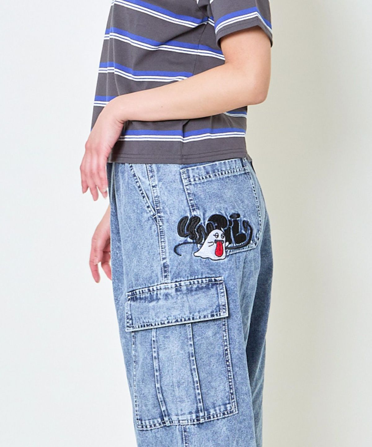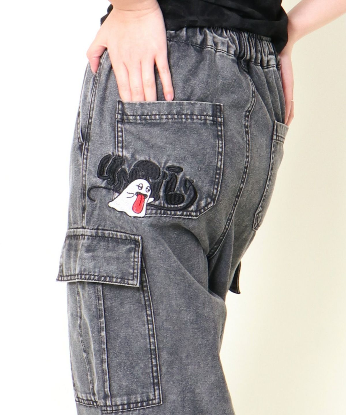 《カーゴポケット×ゆるシルエット》レディース デニムパンツ 刺繍入り ジョガー風 春夏秋冬