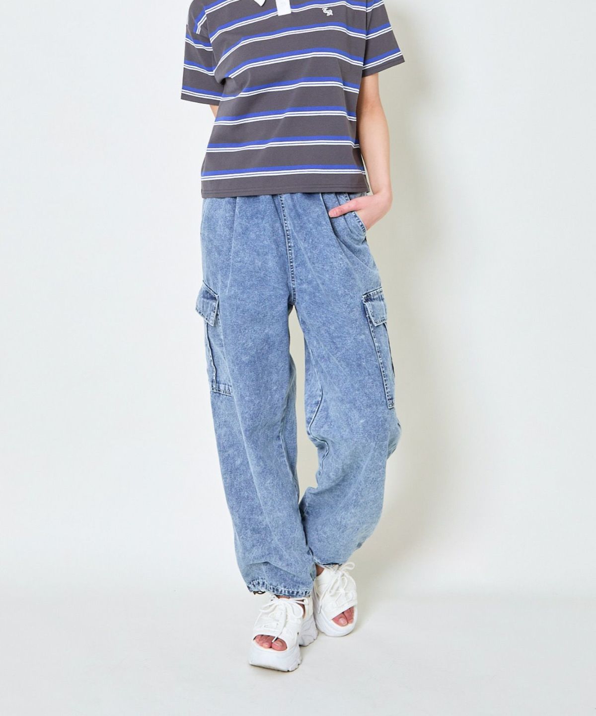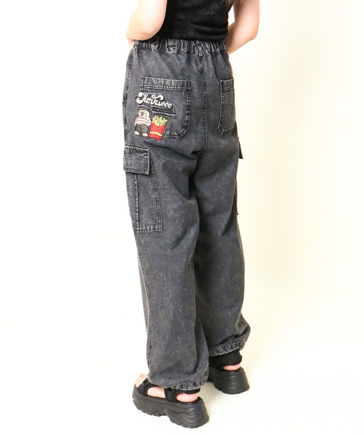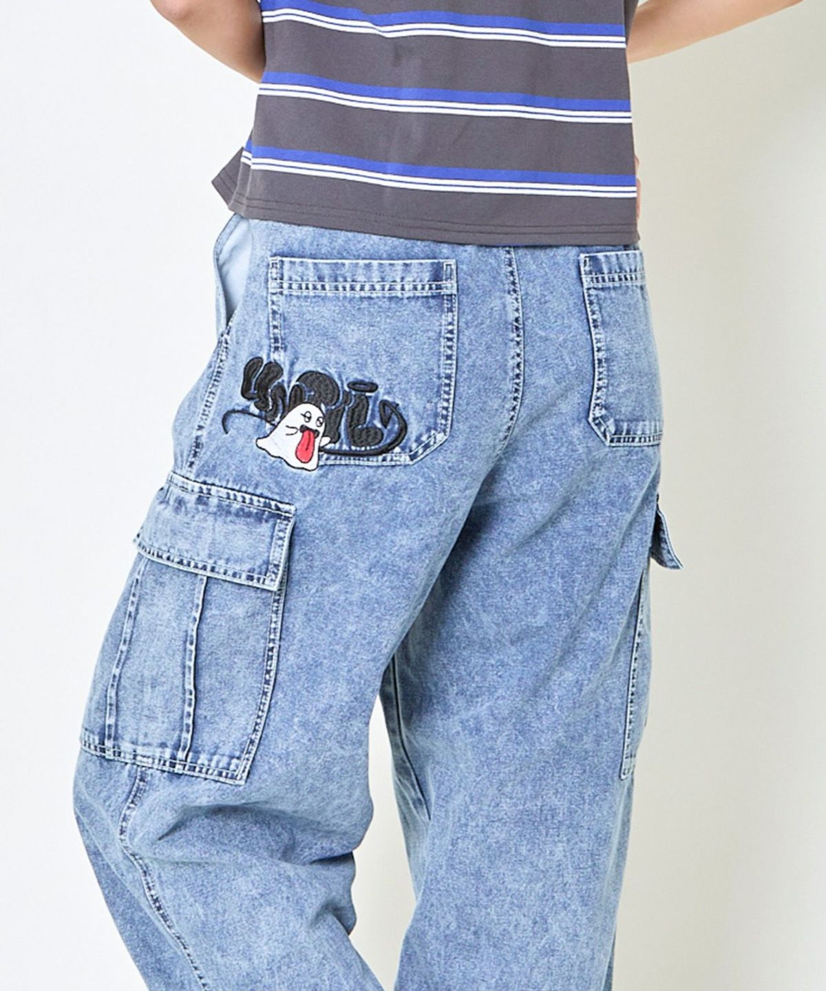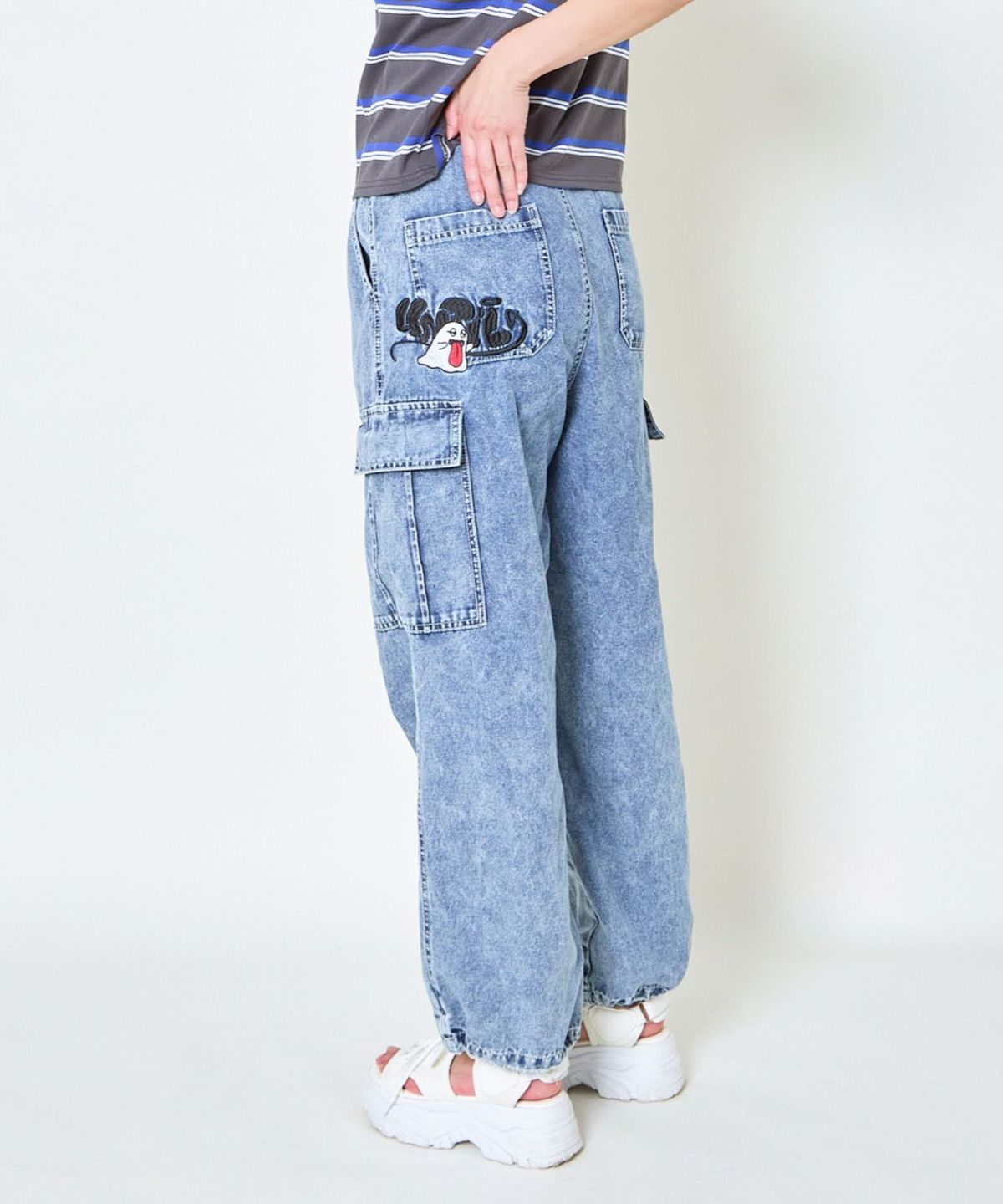 《カーゴポケット×ゆるシルエット》レディース デニムパンツ 刺繍入り ジョガー風 春夏秋冬