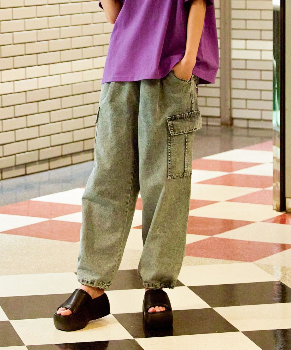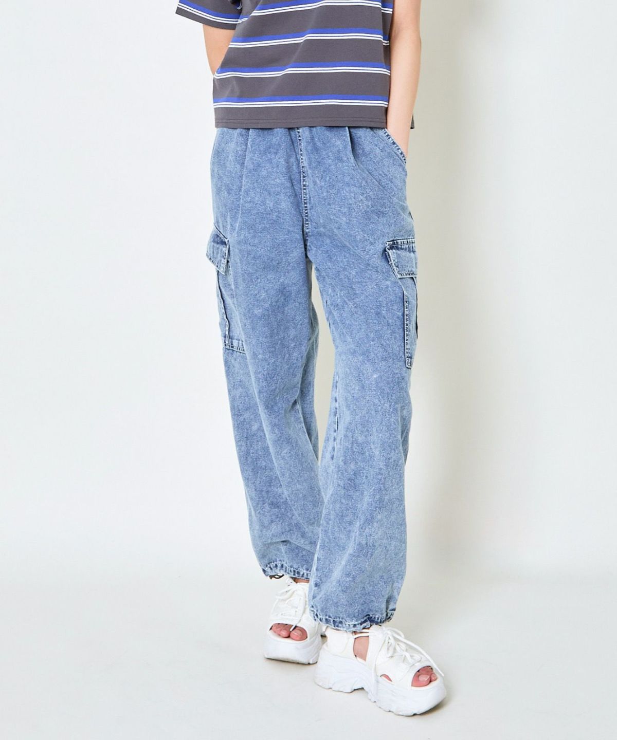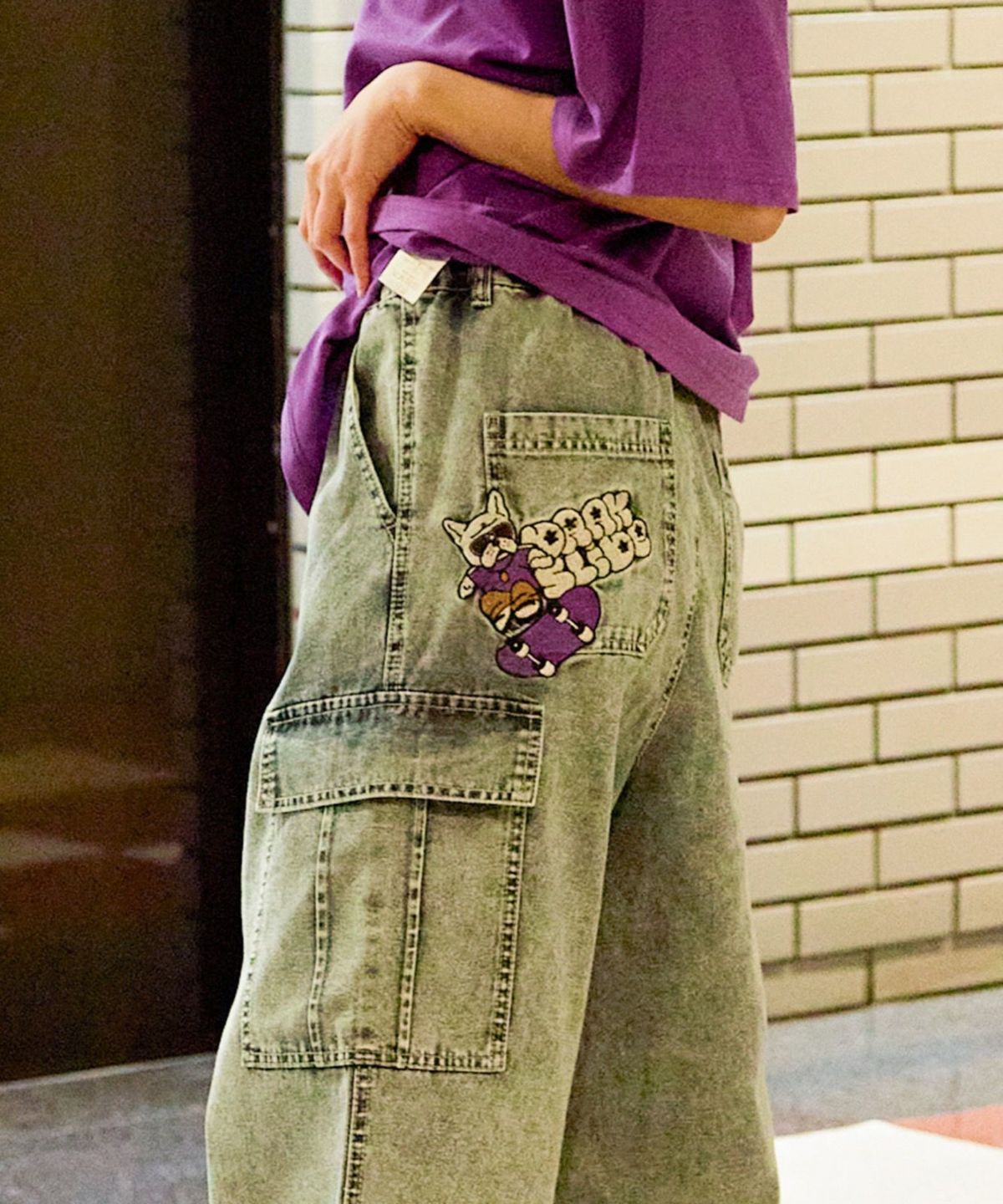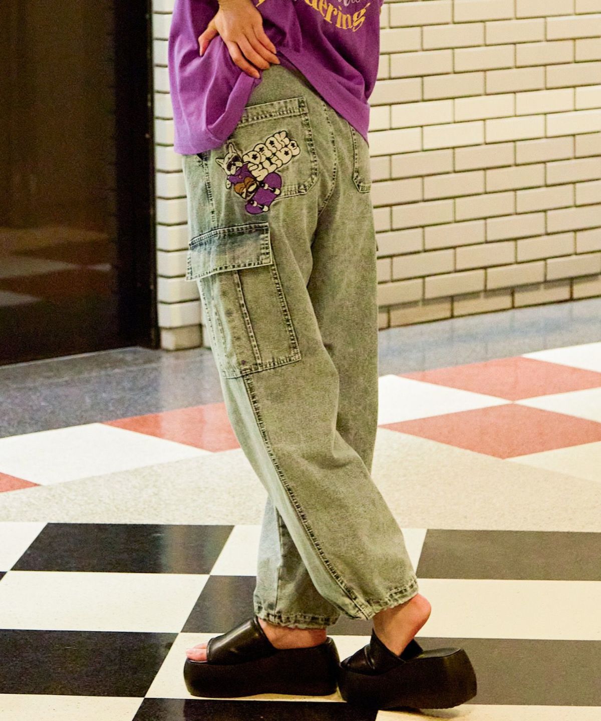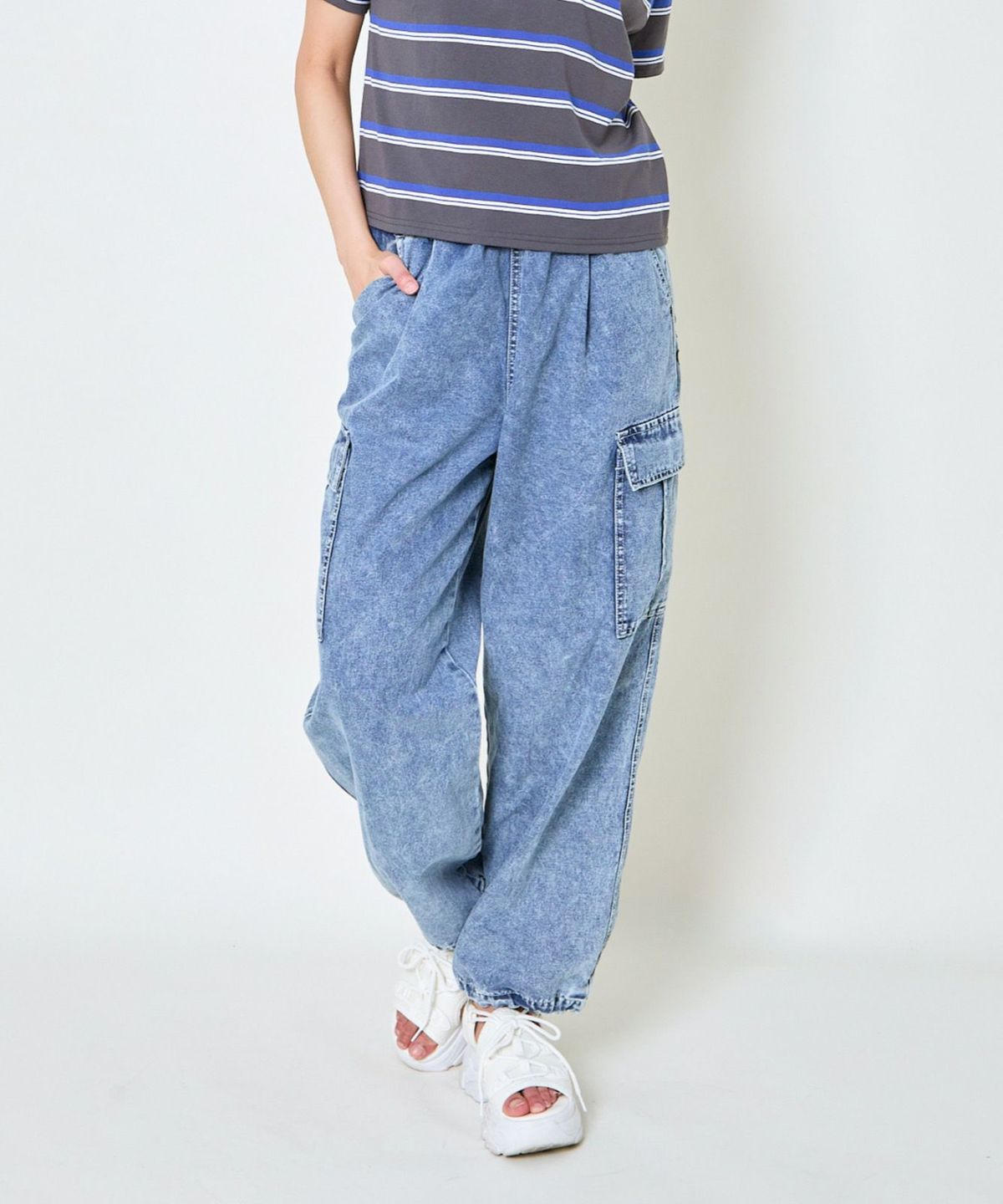 《カーゴポケット×ゆるシルエット》レディース デニムパンツ 刺繍入り ジョガー風 春夏秋冬